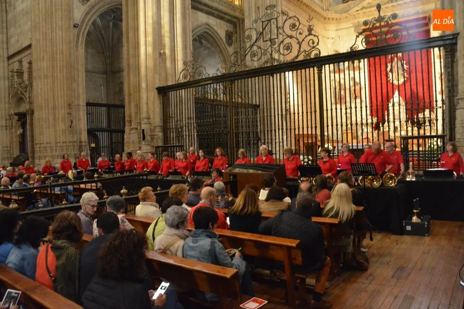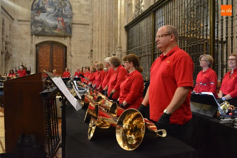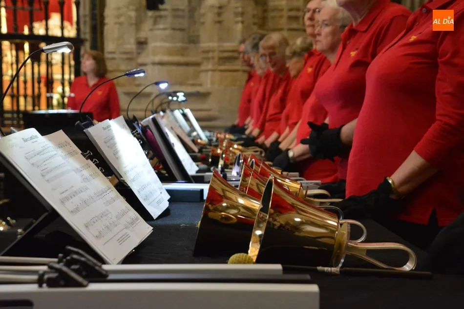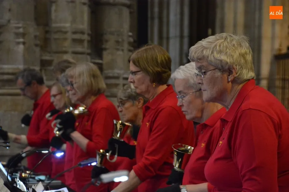 La Catedral de Salamanca ha acogido este miércoles el novedoso concierto de un coro de campanas de mano, que se ha escuchado por primera vez en España en la Seo nueva.