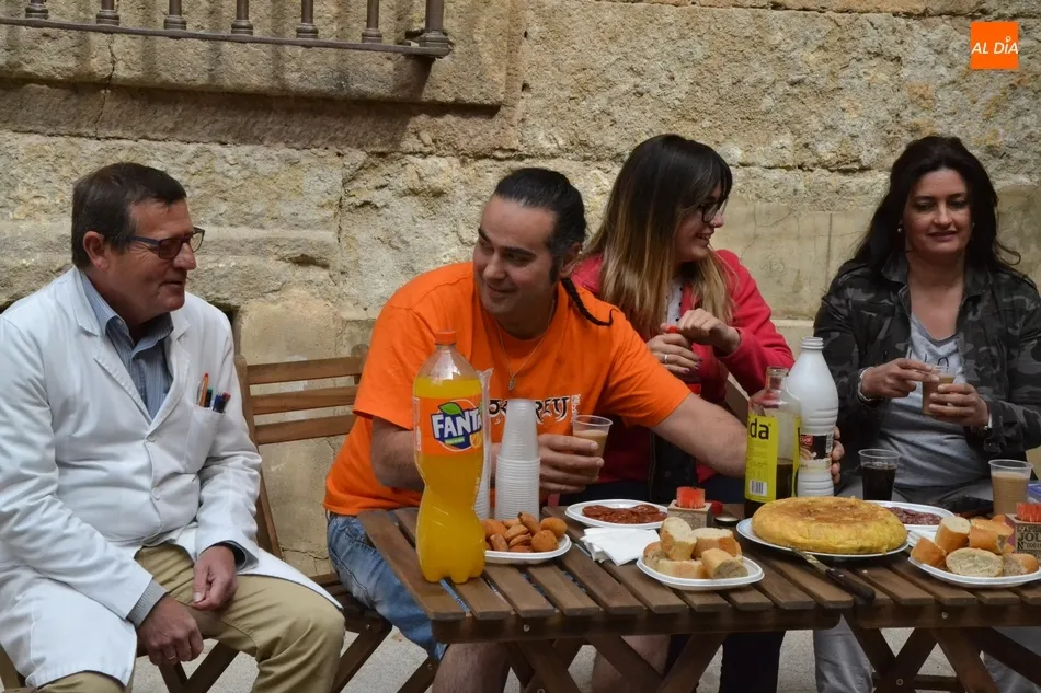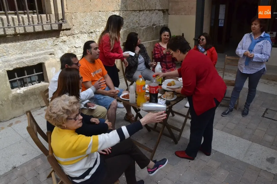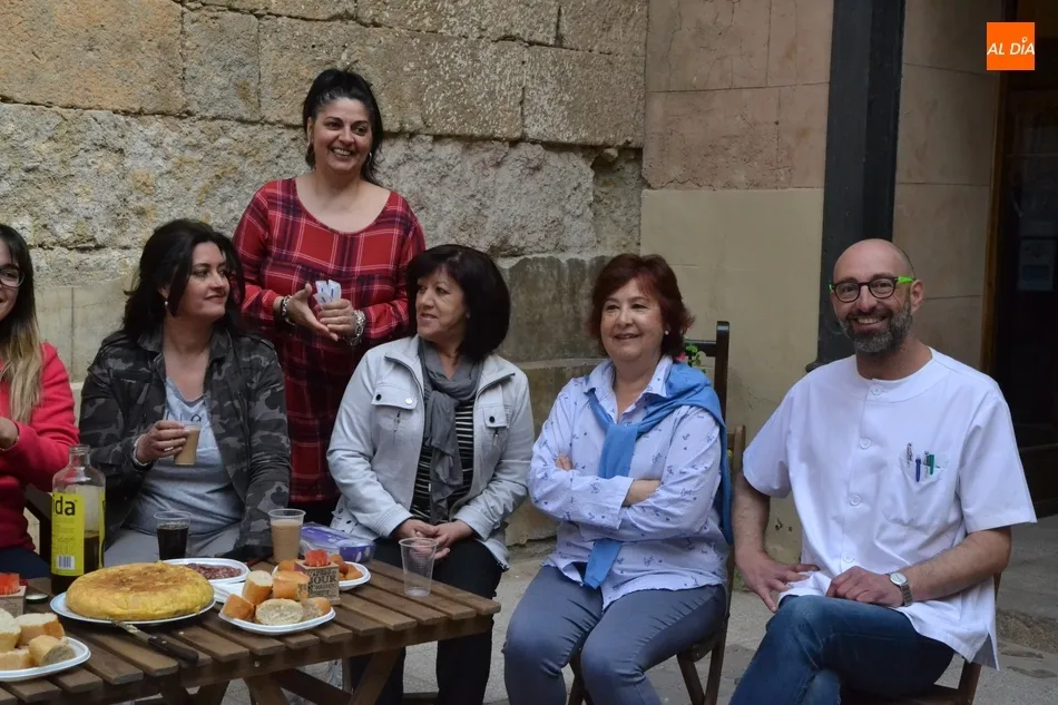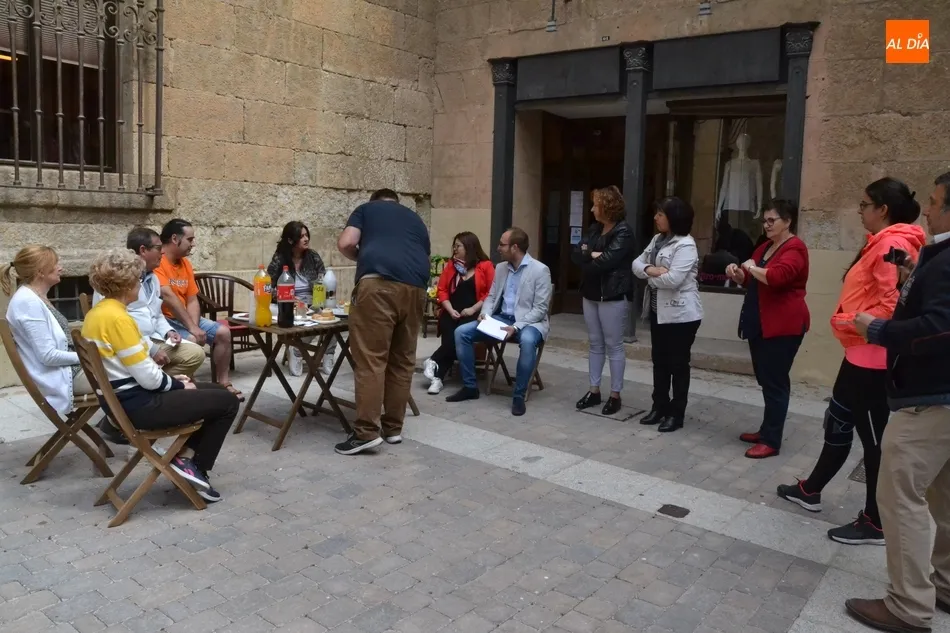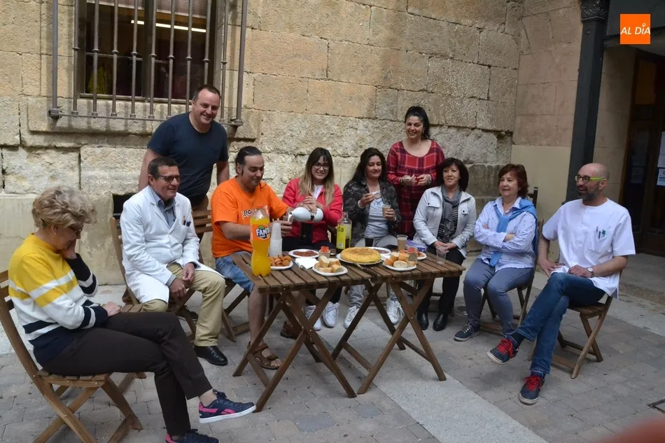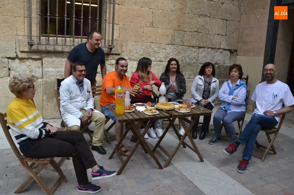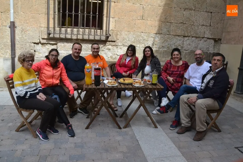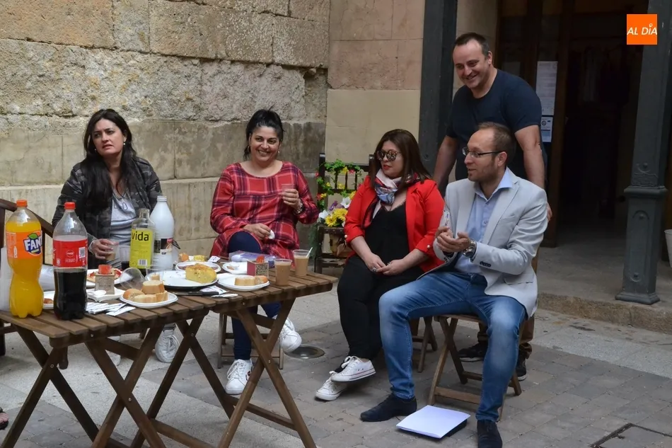 Por iniciativa del Café-Bar La Tertulia de la vecina calle Toro, se reivindicó el regreso del banco con un pincho callejero, para lo cual se desplegaron sillas y una mesa sobre la cual se colocaron una tortilla, croquetas, empanadillas o embutido, de los que dieron buena cuenta los comerciantes de la vía que se fueron acercando hasta allí cuando la disponibilidad de sus negocios se lo permitió.