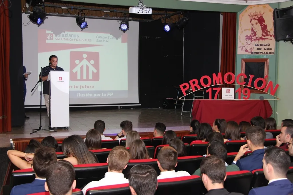 Este jueves se celebró la ceremonia de ?Graduación? de los alumnos de Salesianos Pizarrales pertenecientes a sus ciclos de Grado Superior de Asistencia a la Dirección, Administración y Finanzas, Sistemas Electrotécnicos y Automatizados, Administración de Sistemas Informáticos en Red y Desarrollo de Aplicaciones Multiplataforma.