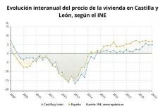 El precio medio de la vivienda libre en Castilla y León subió un 4,9 por ciento en el primer trimestre en tasa interanual, frente a un 6,8 por ciento en España que registra en este caso dos décimas más que en el trimestre anterior, según el Índice de Precios de Vivienda (IPV) del Instituto Nacional de Estadística (INE) publicado este viernes y recogido por Europa Press.