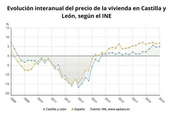 Además, los precios de la vivienda presentaron tasas trimestrales positivas en el primer trimestre de 2019 en todas las comunidades autónomas, con Castilla y León en la mitad del ranking con un repunte del 1,4 por ciento, una décima menos que en España (1,5 por ciento).