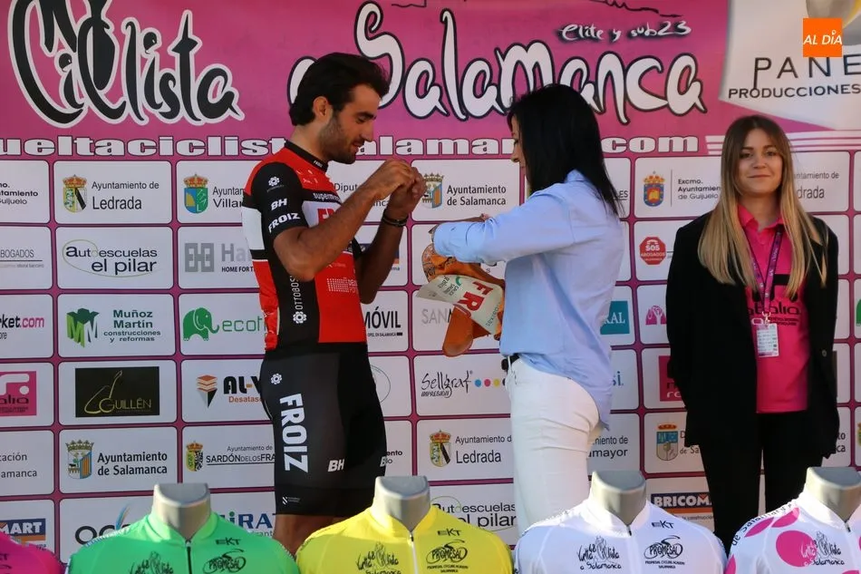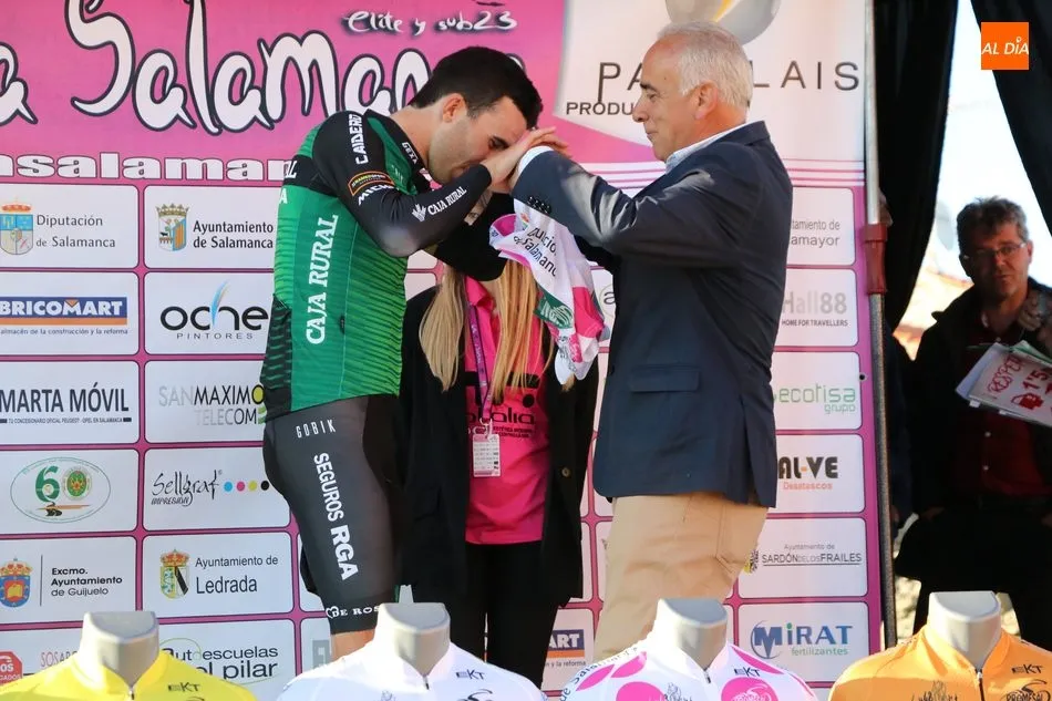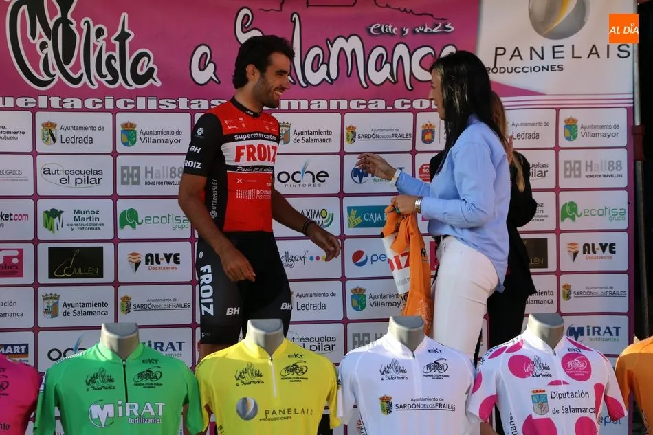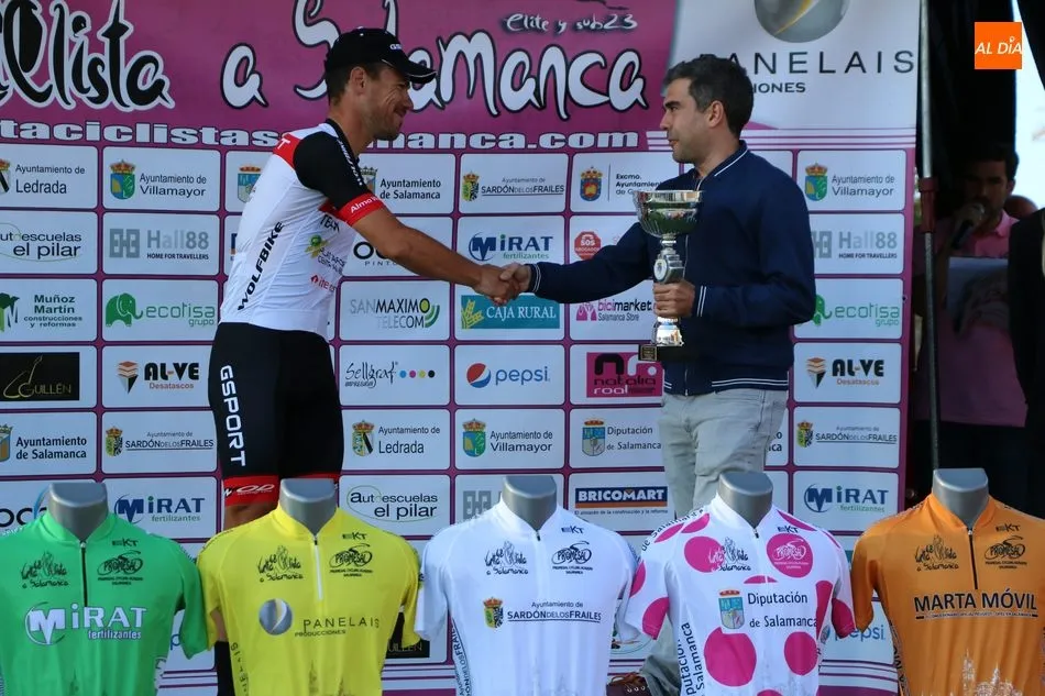 El maillót blanco se lo entrregaba al ganador de la prueba el alcalde de Sardónd e los Frailes, Benjámin Cuadrado. También intervinieron en la entrega de camistas el diputado provincial de Deportes, Jesús María Ortiz, y el diputado provincial y alcalde de Doñinos, Manuel Hernández, además de Lale Cubino como director de la carrera, y otros responsables del Club de Ciclismo Promesal, así como los dos concejales de Sardón de los Frailes.
