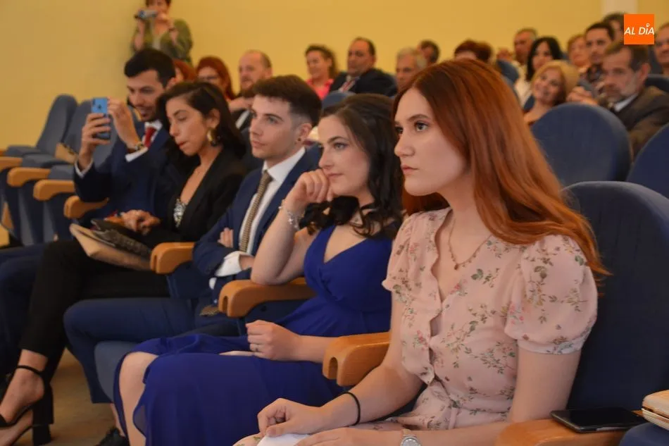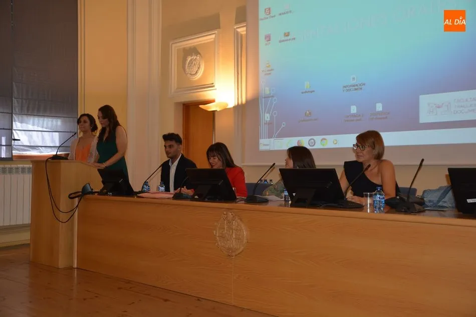 La Facultad de Traducción y Documentación de la Universidad de Salamanca ha celebrado este sábado la imposición de becas a los nuevos graduados en Información y Documentación con la presencia de la vicerrectora de Estudiantes y Sostenibilidad, Ana Belén Ríos.