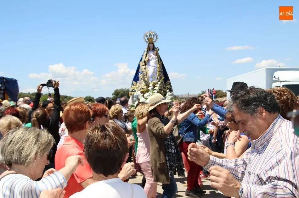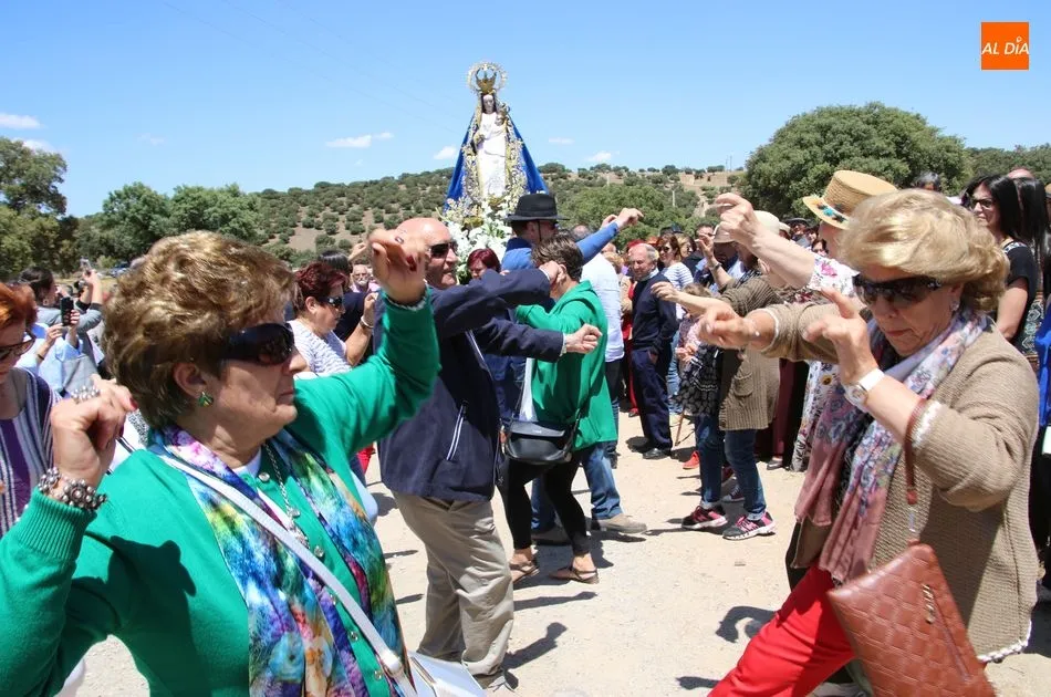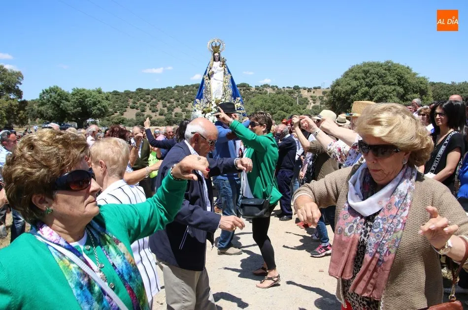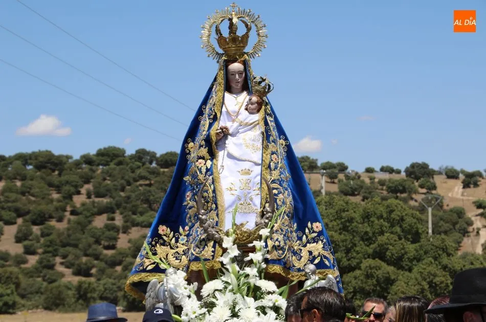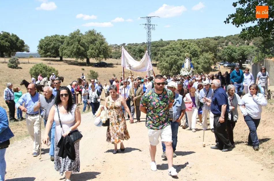La talla recorrió el trayecto pasando por las cuatro cruces que rodean el santuario (cruz camino de Horcajo, cruz Camarín, cruz camino Larrodrigo y cruz Pozo Cano)