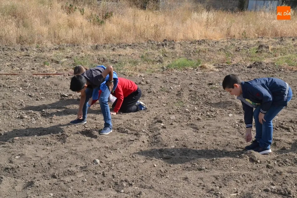 En este sentido, los alumnos del Colegio Miróbriga estuvieron realizando en la mañana del lunes, por un lado, una bomba de semillas, y por otro lado, se adentraron directamente en el huerto para hacer una carrera de chapas por diversos surcos para aprender el papel que juegan diversos animales en el ecosistema agrícola.