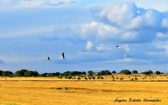 Estas cigüeñas no lo saben, pero, al desplegar sus alas en los ámbitos azules de lo alto, nos están proponiendo ese amoroso lance de trascender la realidad mezquina, al que nos invitara San Juan de la Cruz. Y esta, del amor, es la celebración más alta y más hermosa.