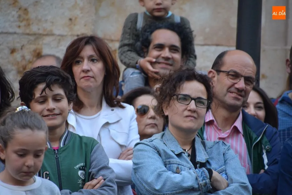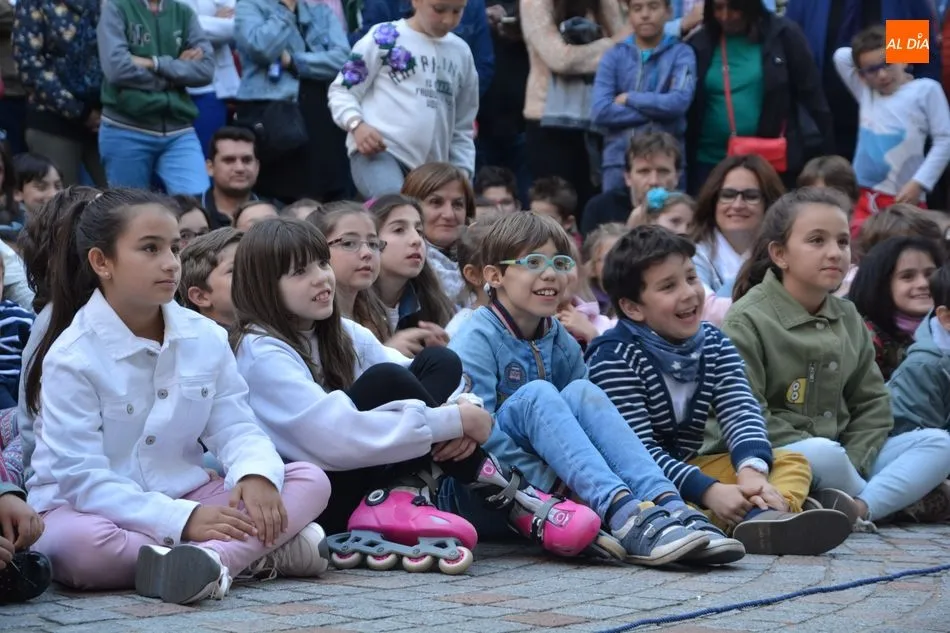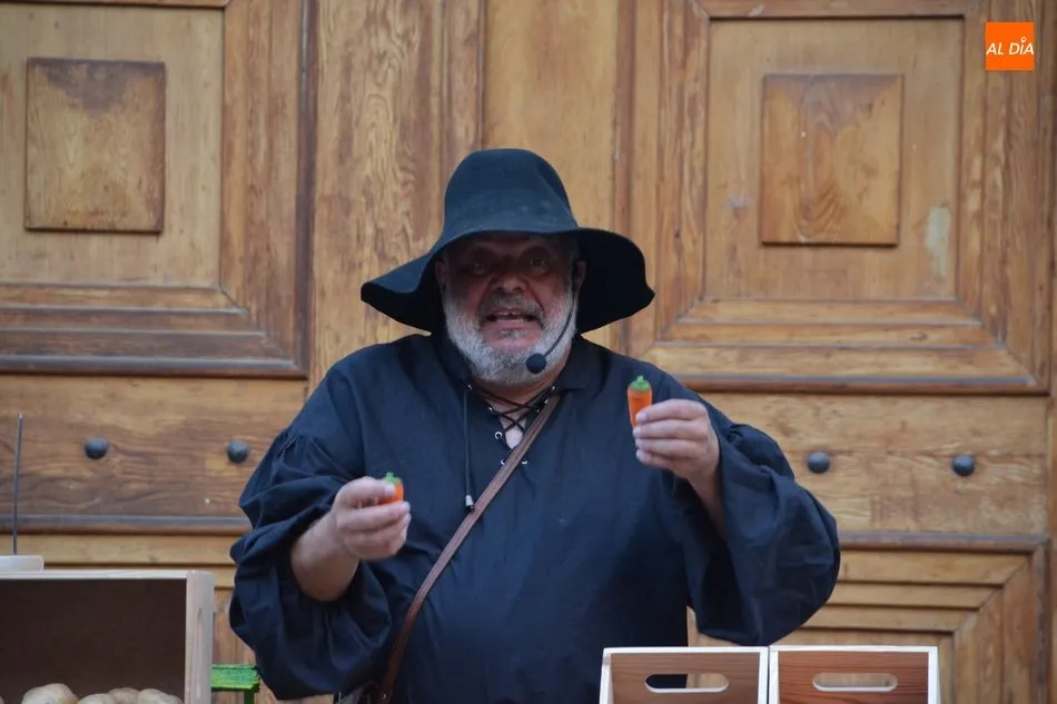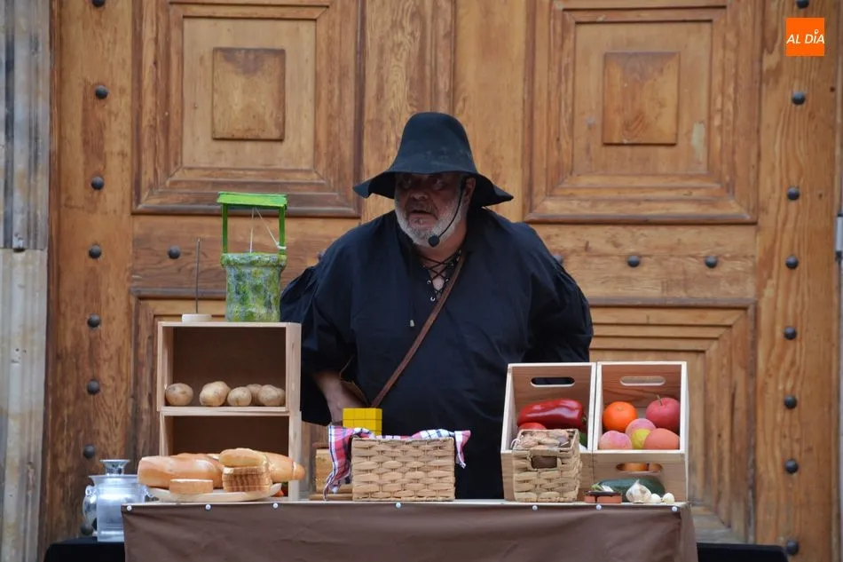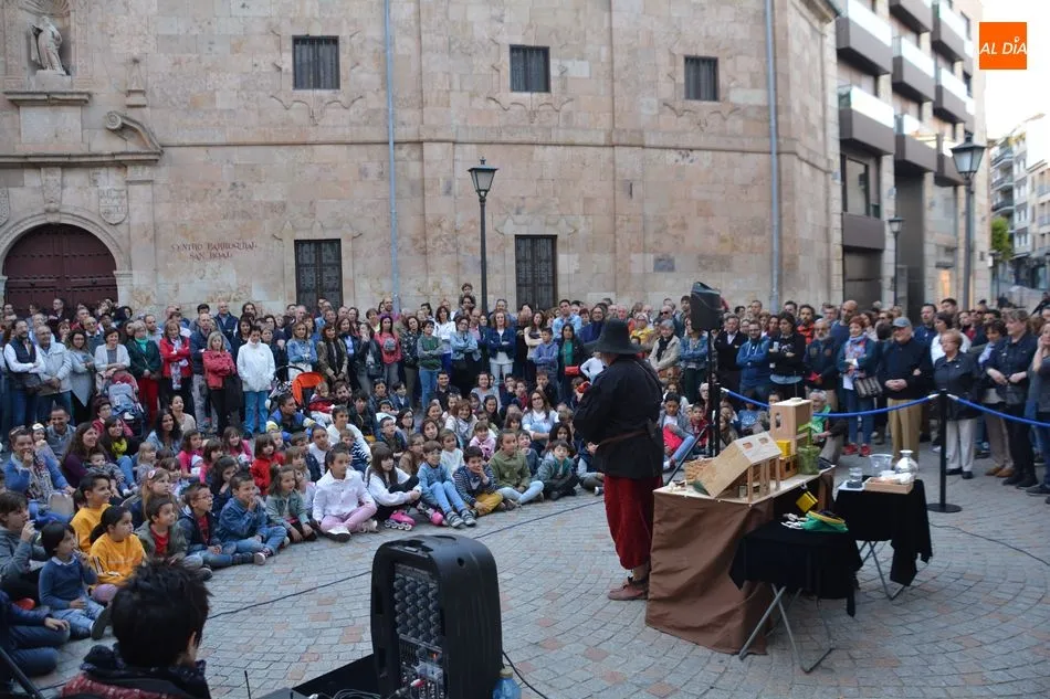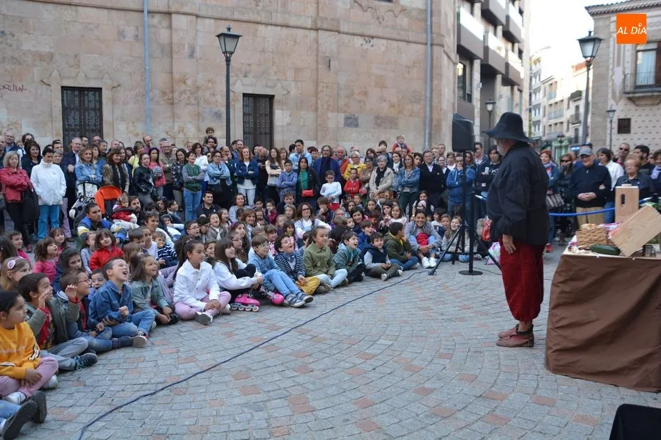 Numeroso público de todas las edades se ha congregado esta tarde en la Plaza de San Boal para disfrutar del espectáculo teatral ?Salamanca en mis alforjas?, una propuesta de Fernando Saldaña basada en leyendas de nuestra ciudad y relacionadas con San Juan de Sahagún o con la Cueva de Salamanca.