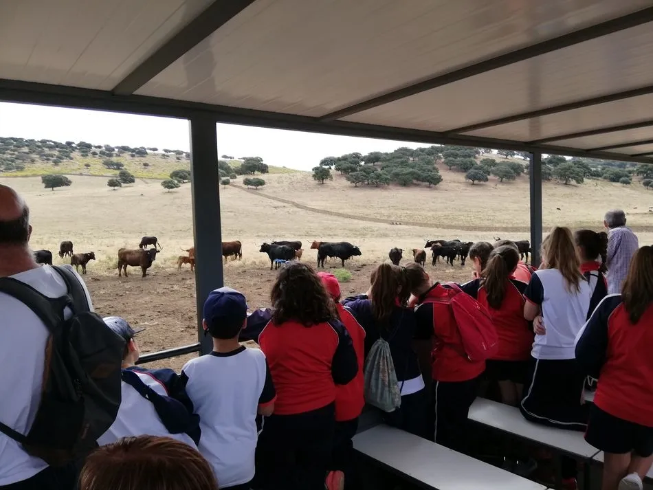 Los escolares del Colegio Alfonso X el Sabio y del Colegio Padres Trinitarios visitaron la finca Cabezal Viejo, donde pastan las reses de la ganadería de José Cruz. Allí, hicieron un recorrido por todas las instalaciones de la finca que fueron explicadas por el ganadero, y conocieron la dehesa salmantina, hábitat natural del toro bravo.