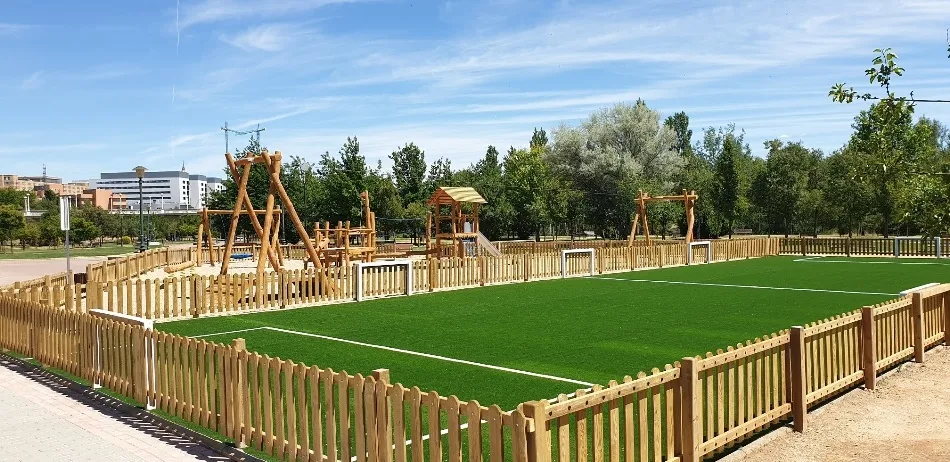El Consistorio ha instalado nuevos elementos para fomentar la imaginación y la habilidad de los más pequeños, con juegos distribuidos en función de la edad: hasta 36 meses, de 0 a 5 años, de 6 a 12 años y para todos los niños. Así, se han instalado los tradicionales toboganes y puentes, pero también juegos de trepa y equilibrio, un columpio con cesta y una tirolina, que tanta aceptación están teniendo en otros parques donde se han instalado. Además, en la zona verde adyacente se ha construido un minicampo de fútbol con porterías que ocupa una superficie total de 300 metros cuadrados.