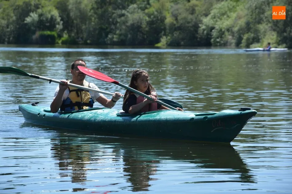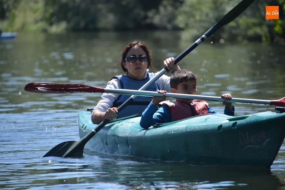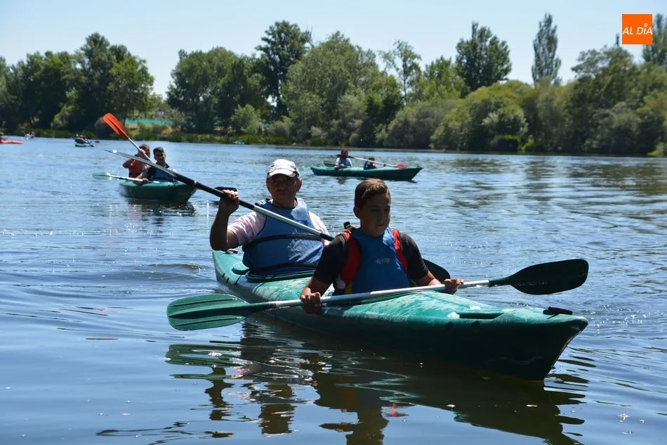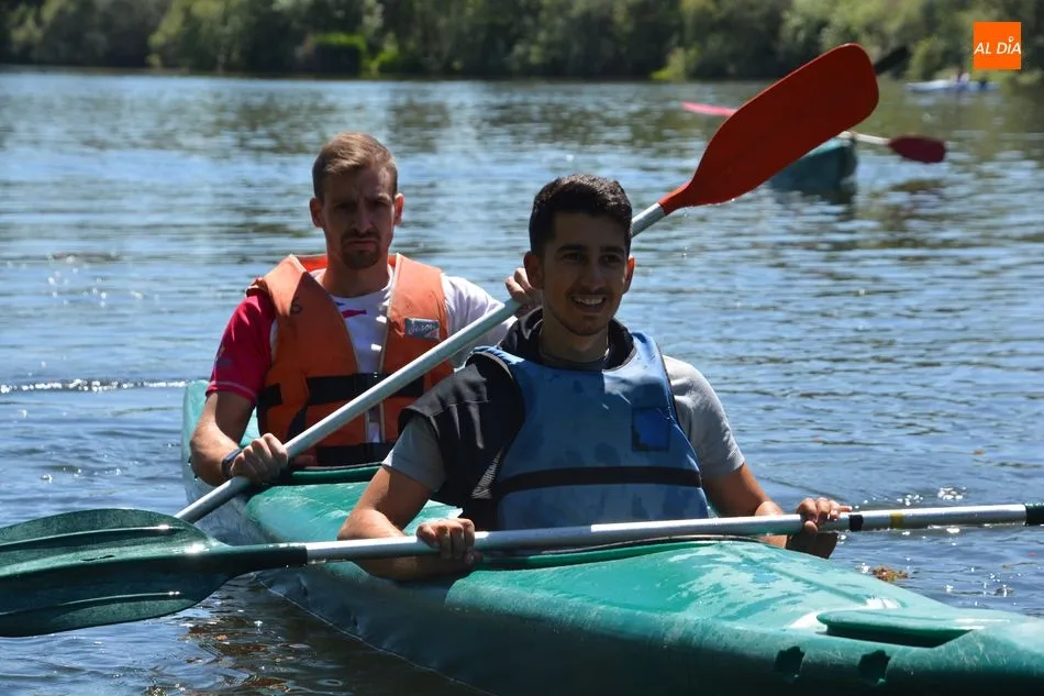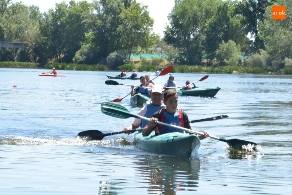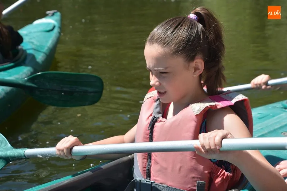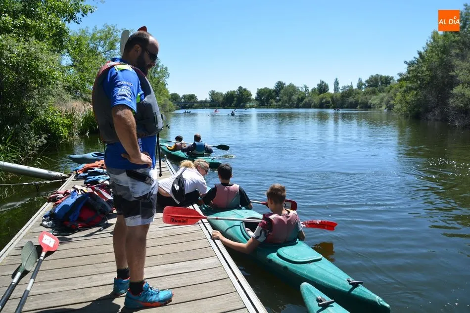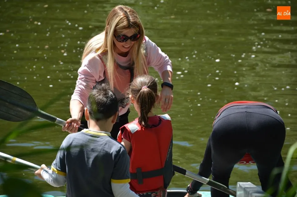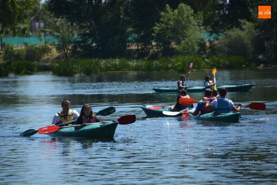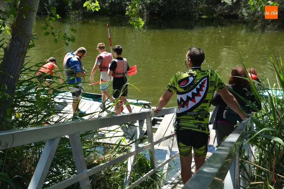 Los aficionados a las piraguas tienen esta jornada una cita en el embarcardero del Tormes, dentro de las actividades programadas con motivo de la festividad de San Juan de Sahagún. Participantes de todas las edades no han dudado en subirse a las piraguas en una actividad que aúna naturaleza y deporte.