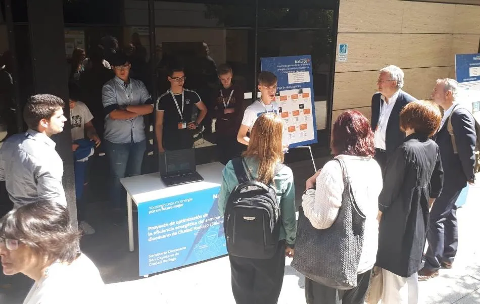 Alumnos de 3º y 4º de la ESO del Seminario Diocesano San Cayetano de Ciudad Rodrigo se desplazaron en la jornada del jueves a Madrid (acompañados por un formador, José María Fernández, y un profesor, Jesús David Fernández), para presentar su proyecto de eficiencia energética dentro del I Congreso Tecnológico Efigy de la Fundación Naturgy.