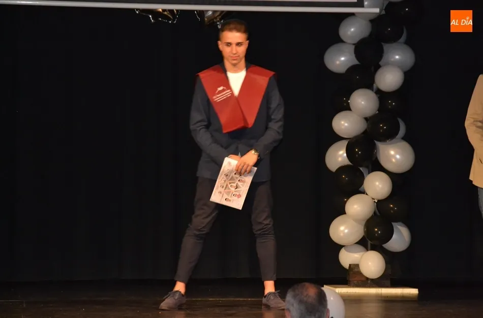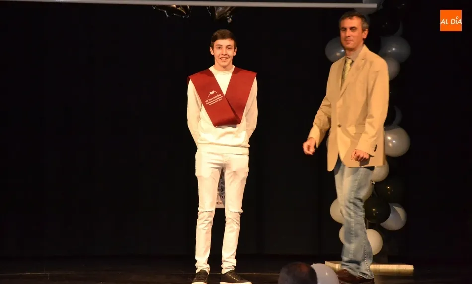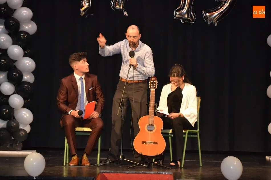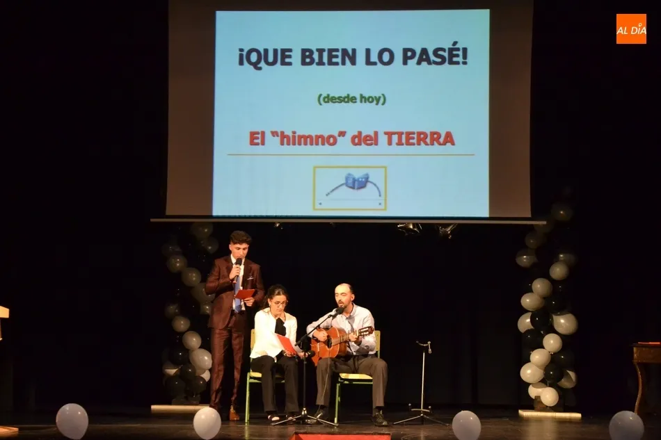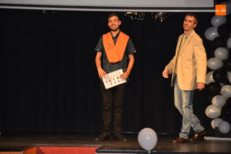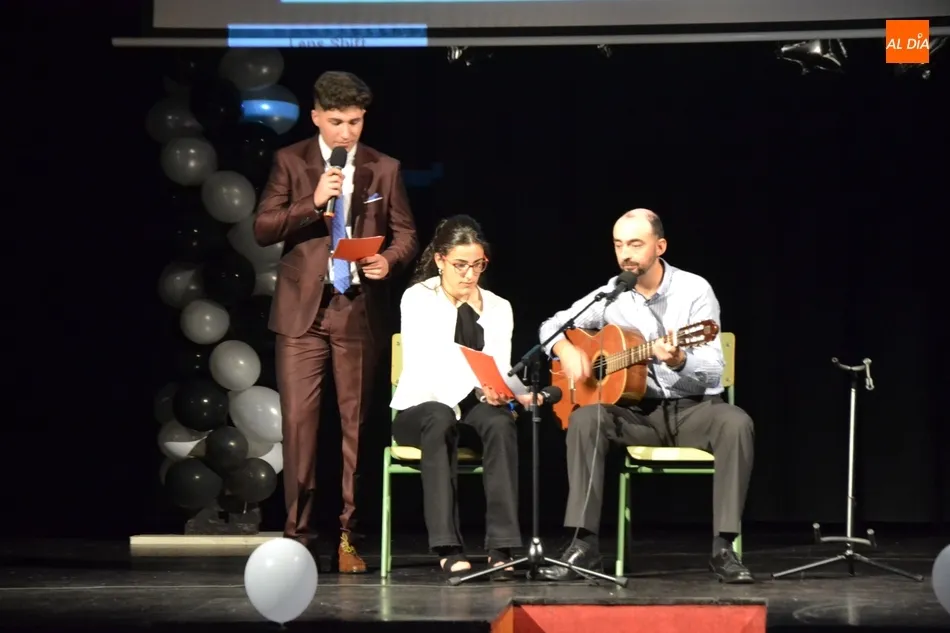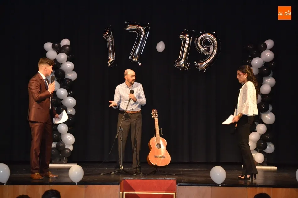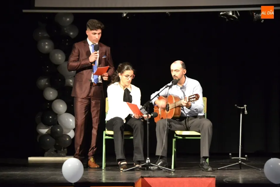 Ya en el tramo final de la ceremonia, el director del IES, José Andrés Cruz, entregó un obsequio a los alumnos de las diversas enseñanzas que han obtenido Matrícula de Honor, antes del gran remate de la gala, que fue con música, de la mano de los presentadores y de uno de los profesores de Formación Profesional, Fran. Concretamente, interpretaron el nuevo himno del IES Tierra de Ciudad Rodrigo, cuyo estribillo pudo ser cantado por todos los presentes al proyectarlo en la pantalla.