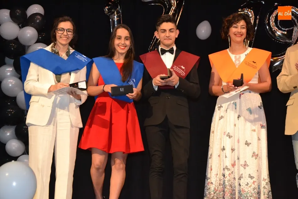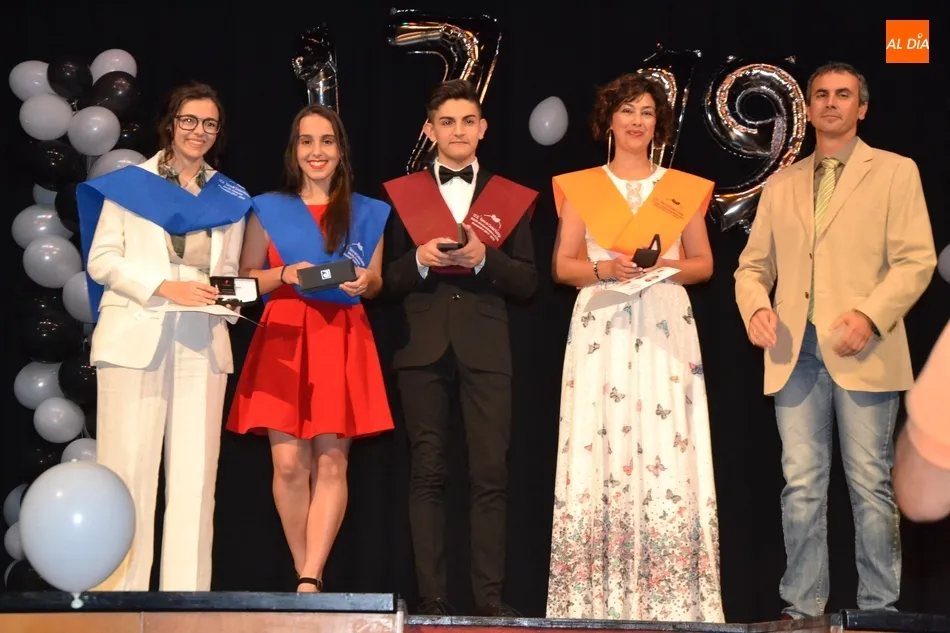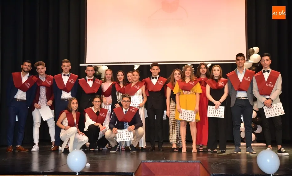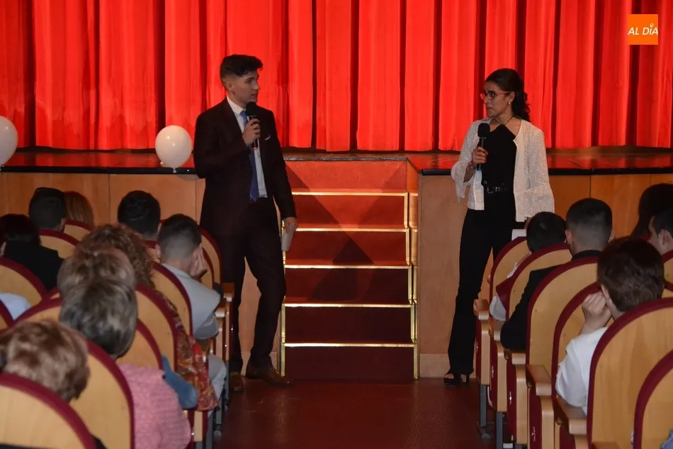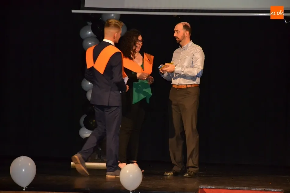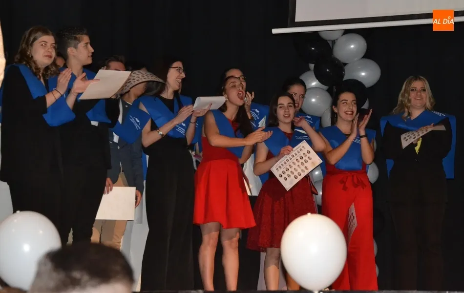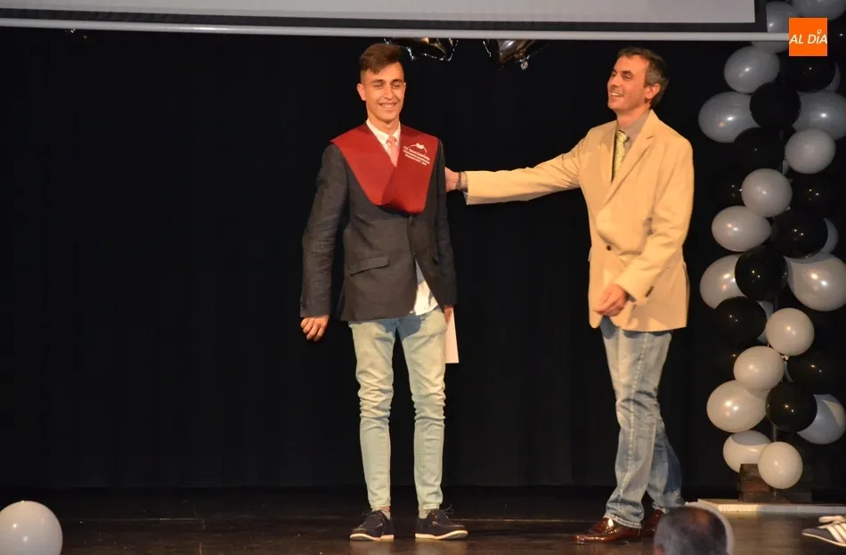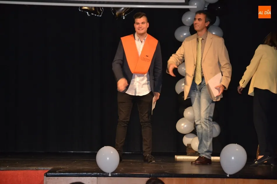 Ya en el tramo final de la ceremonia, el director del IES, José Andrés Cruz, entregó un obsequio a los alumnos de las diversas enseñanzas que han obtenido Matrícula de Honor, antes del gran remate de la gala, que fue con música, de la mano de los presentadores y de uno de los profesores de Formación Profesional, Fran. Concretamente, interpretaron el nuevo himno del IES Tierra de Ciudad Rodrigo, cuyo estribillo pudo ser cantado por todos los presentes al proyectarlo en la pantalla.