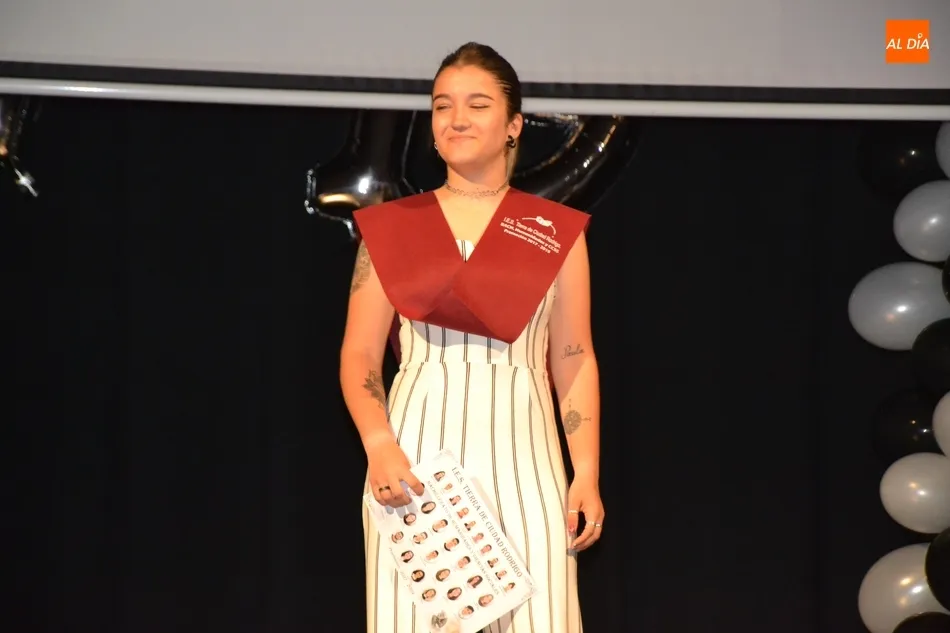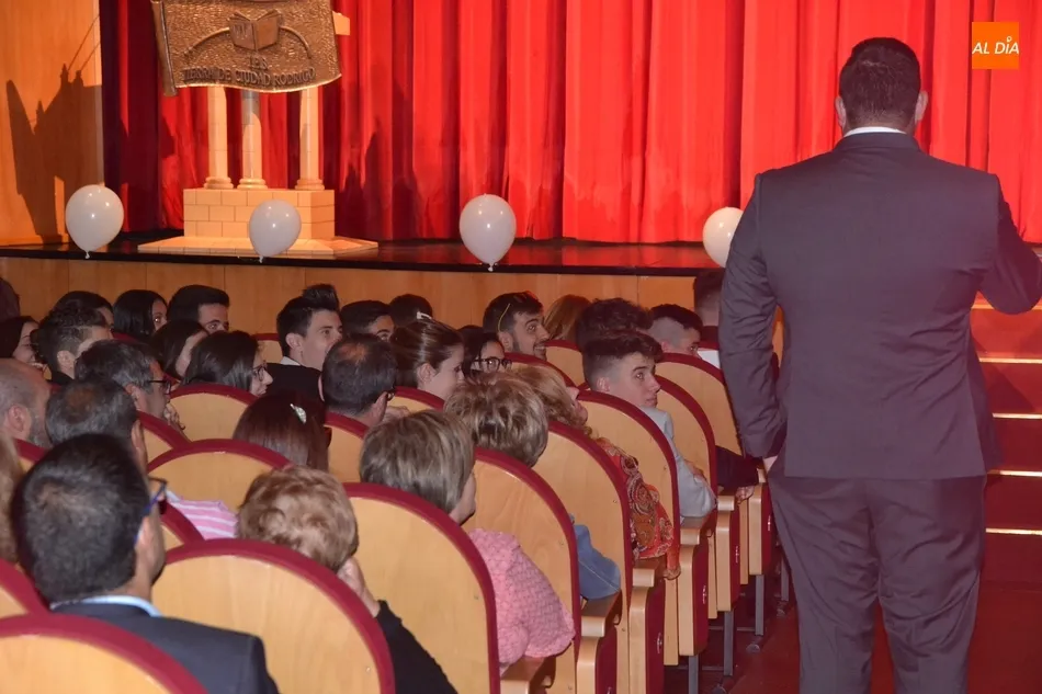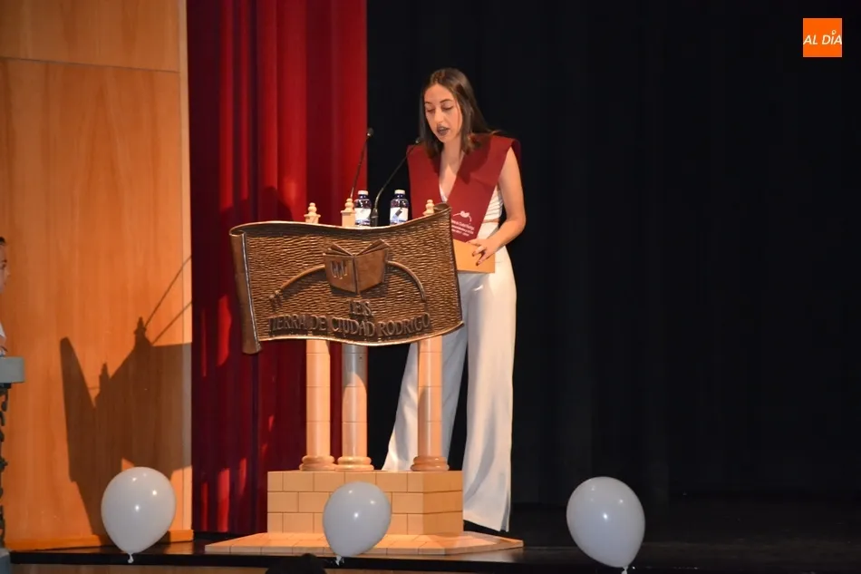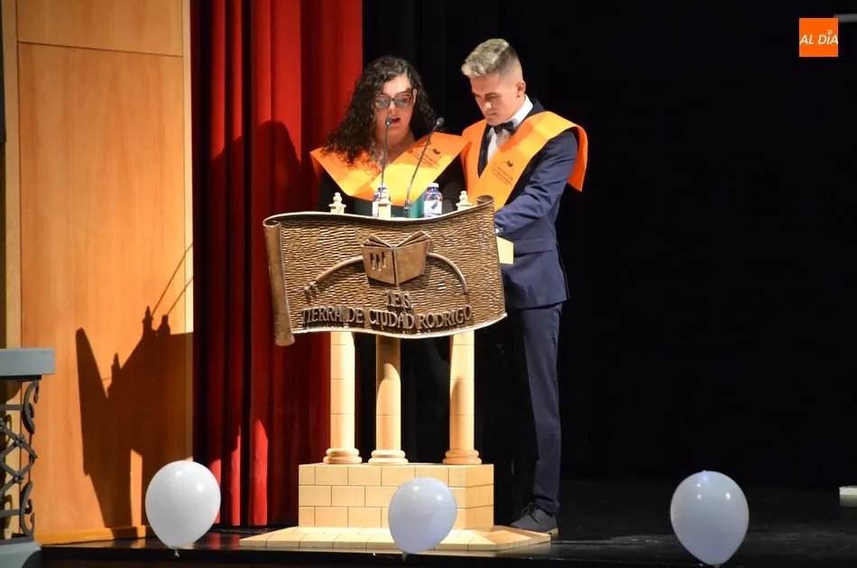 24 horas después de la graduación del IES Fray Diego Tadeo, el Teatro Nuevo Fernando Arrabal abrió sus puertas en la mañana del viernes a los alumnos, profesores y familias del otro IES de la ciudad, el Tierra de Ciudad Rodrigo, para vivir la despedida formal de aquellos que finalizan este mes de junio en ese centro la etapa de Bachillerato o de Ciclos Formativos. Pese a contar con más Ciclos, la ceremonia fue muy ágil, siendo lo más novedoso la introducción de pequeños bloques artísticos que le dieron mayor dinamismo.