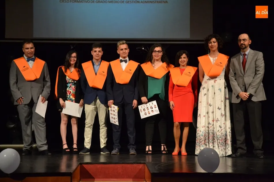 Tras el discurso del director, comenzó la imposición de bandas a los alumnos de 2º del Grado Superior de Administración y Finanzas, del Grado Medio de Gestión Administrativa y del Grado Medio de Instalación y Amueblamiento. Únicamente los alumnos del GM de Gestión Administrativa hicieron un pequeño discurso en ?el día de los días que tanto deseábamos?, a partir del cual ?cada uno tomará un camino?. En su intervención, hicieron una reivindicación de la Formación Profesional: ?es una educación ninguneada por muchos, pero es tan válida como otras, y hay que estudiar igual que el resto?.