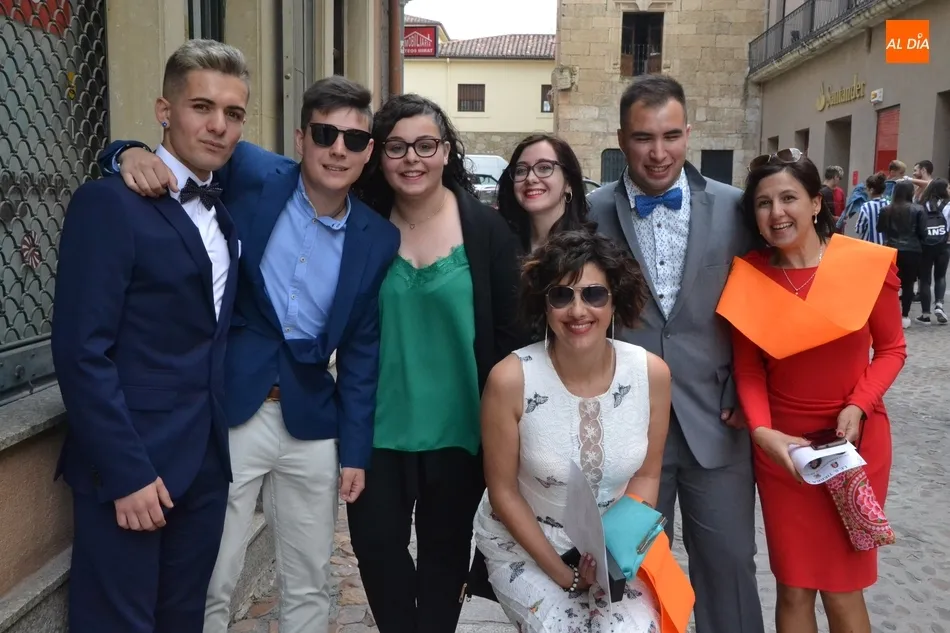 Concluida una ceremonia que ?hemos intentado hacer amena y diferente?, como apuntó para cerrar Ismael, uno de los presentadores, llegó el momento de hacer un sinfín de fotos de familia en el hall del Teatro y a las puertas del mismo antes de irse de celebración.