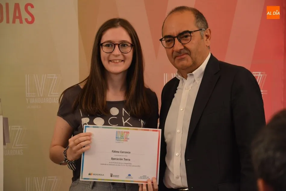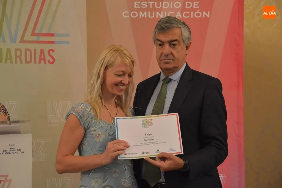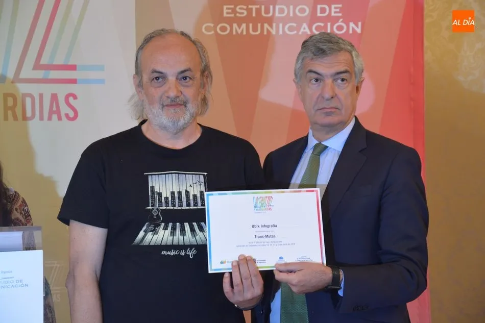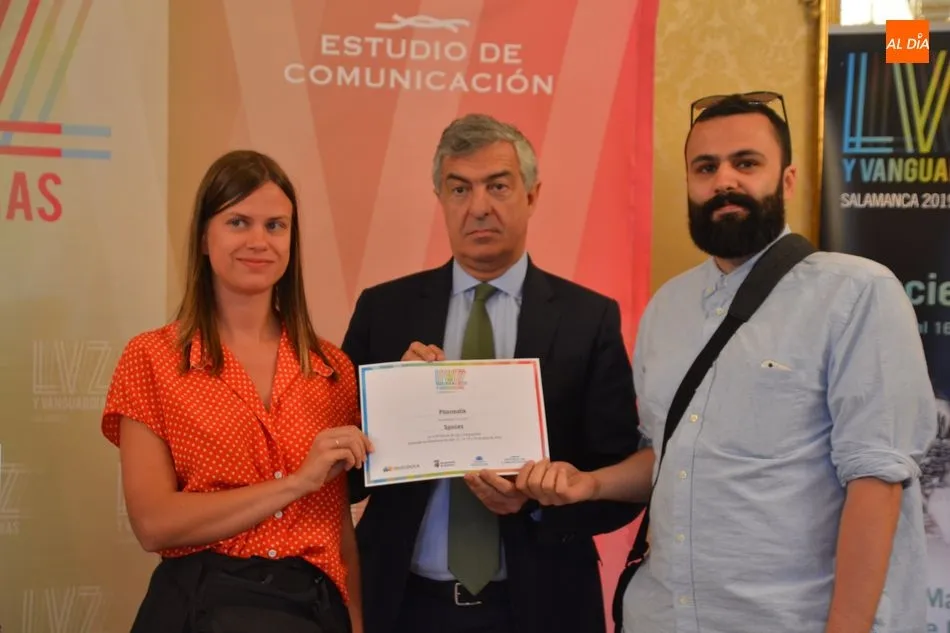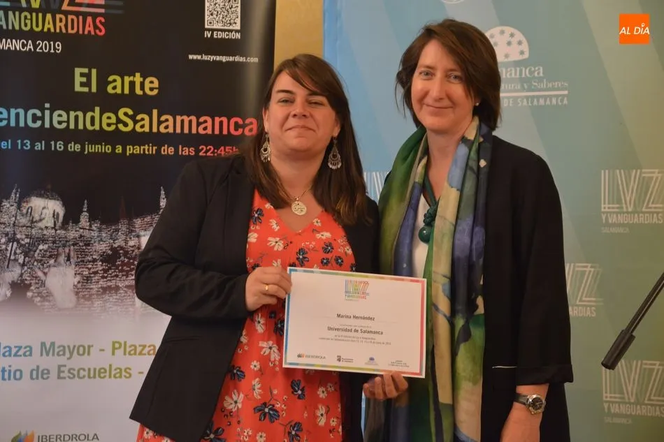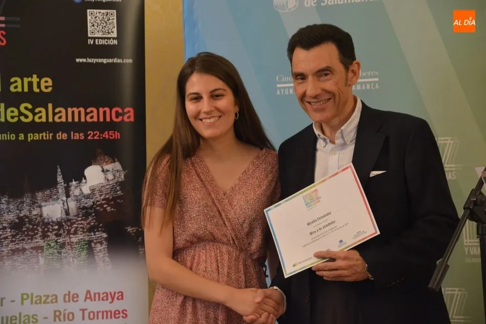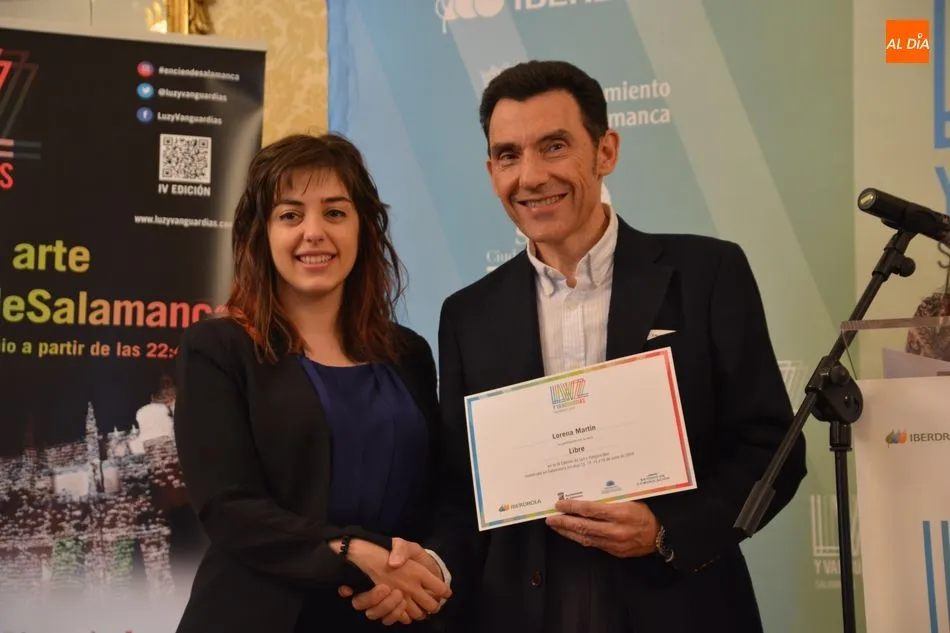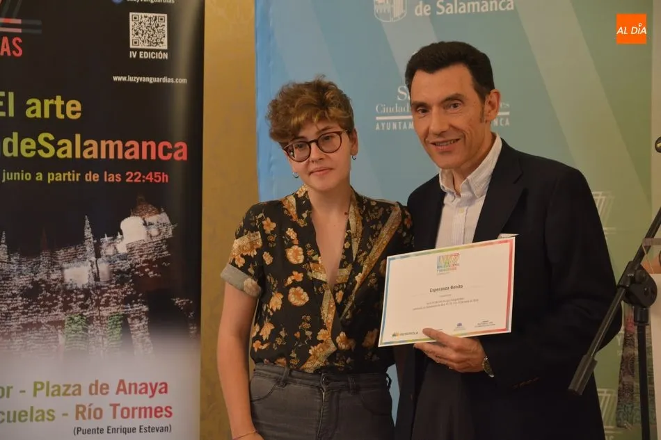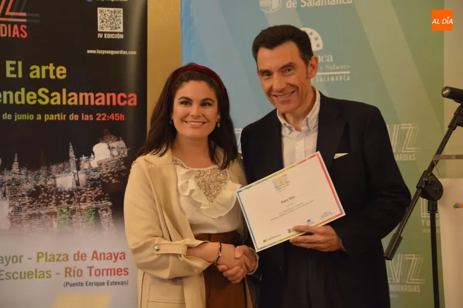Luis Gómez asesor de Presidencia de Iberdrola, empresa que apoya la celebración del festival Luz y Vanguardias, ha entregado menciones al resto de los artistas y estudios presentes en el acto. Los creadores de ambas universidades de Salamanca, que durante estos días están proyectando sus obras sobre el edificio histórico de la Universidad han recibido también diplomas acreditativos de manos de Benito Berceruelo, Consejero Delegado de Estudio de Comunicación, la empresa organizadora del festival.