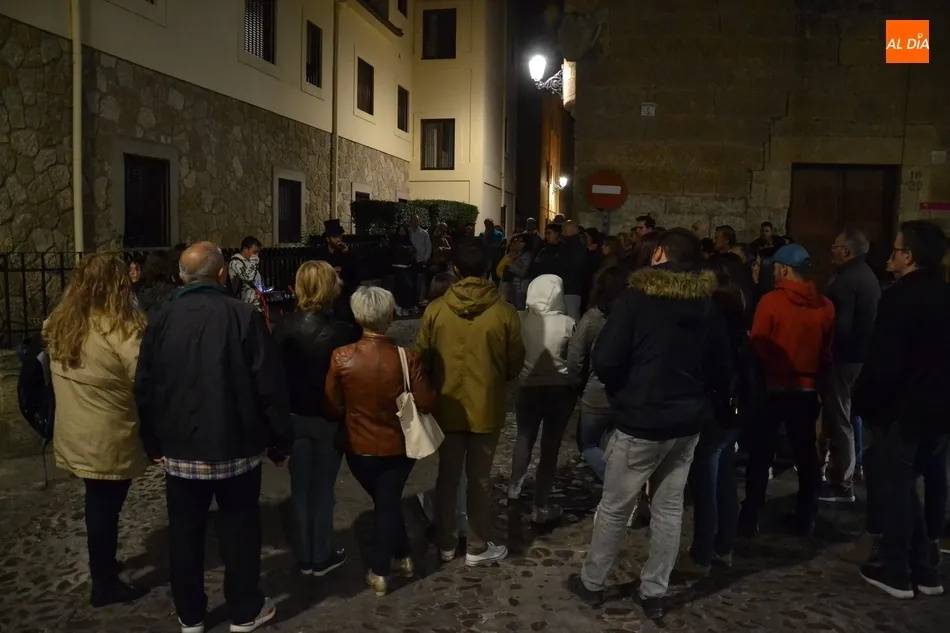 En una noche de viernes bastante fresca (que, eso sí, fue mejorando según pasaban los minutos), un centenar de personas conoció los entresijos de la crónica negra de Ciudad Rodrigo en una nueva edición de la Ruta de los Malditos, en este caso, versión 75 Aniversario (que une las mejores historias y personajes de las Rutas 1 y 2 con nuevas incorporaciones).