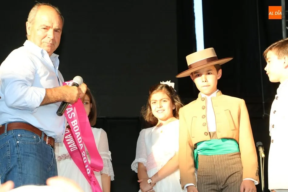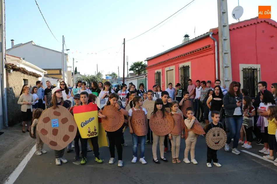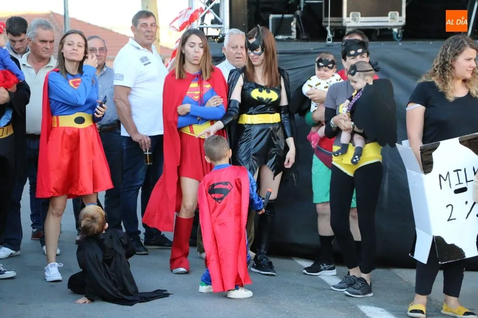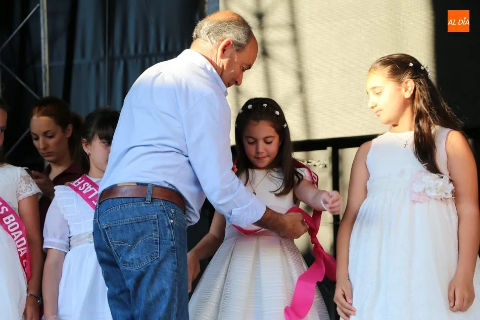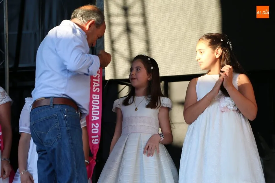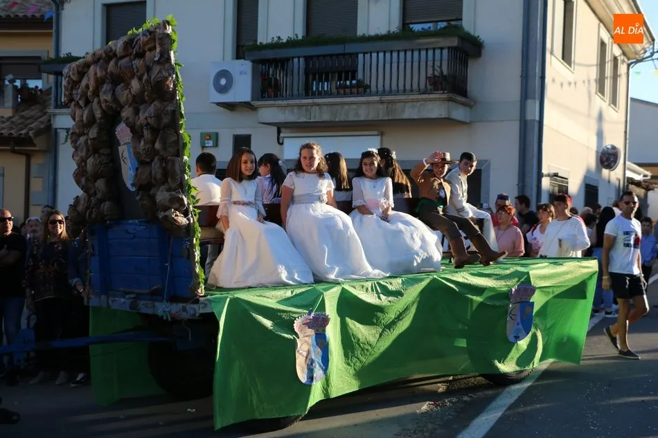 Superhéroes, una gran encina símbolo del Campo Charro, todo un apetitoso desayuno con galletas María, una parodia sobre la etapa de Isabel Pantoja entre rejas y la corte de honor con las seis niñas y tres niños que han tomado la Primera Comunión, animaban el desfile de carrozas que daba paso a la colocación de las bandas a las integrantes de la Corte de Honor y un escudo para ellos, episodio que corría a cargo del alcalde de Boada, Matías Garzón.