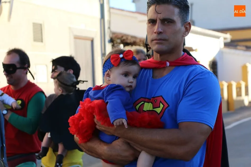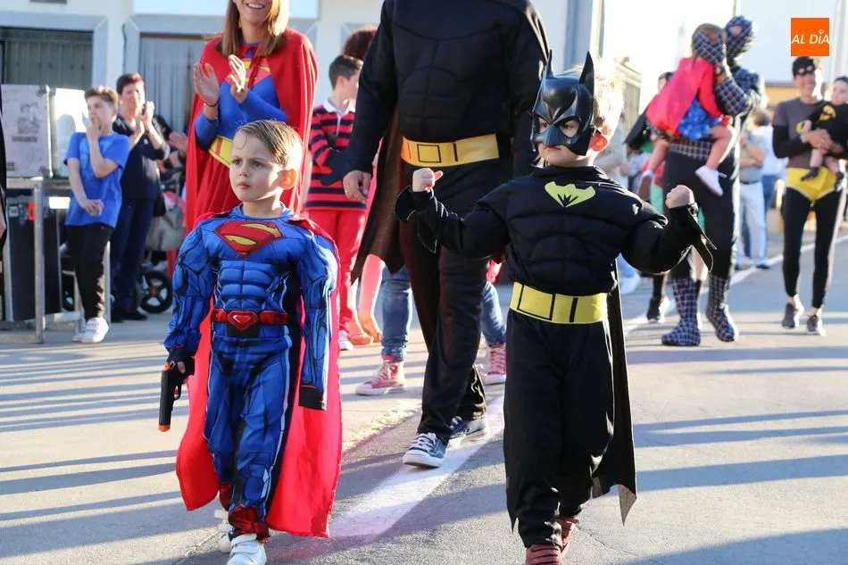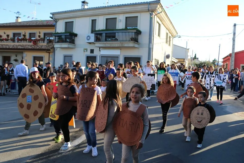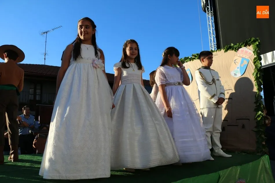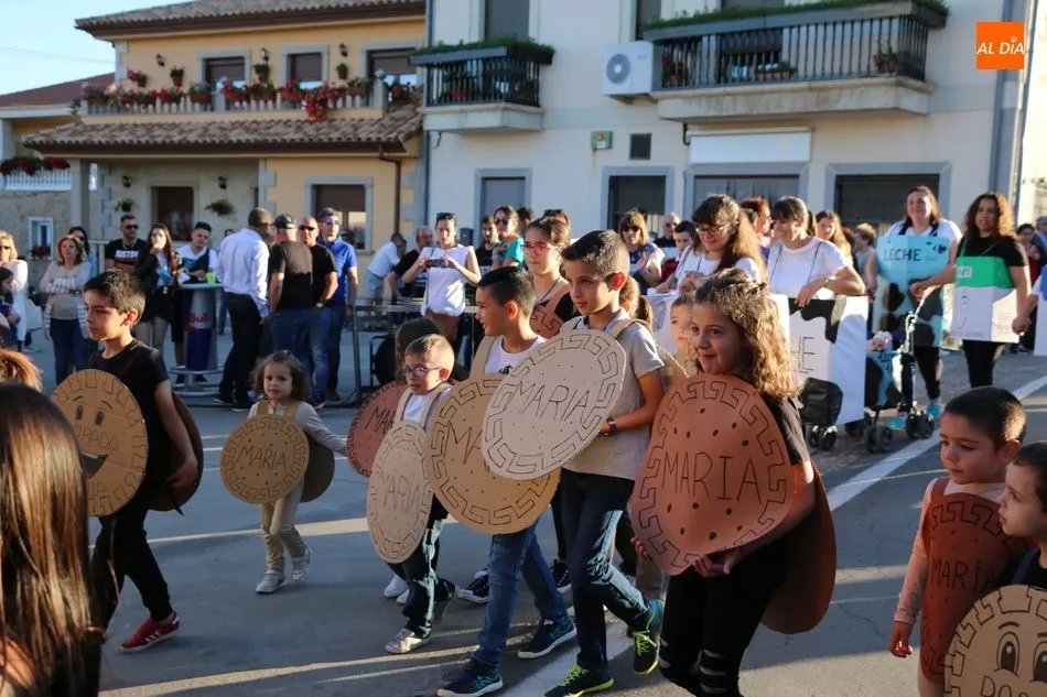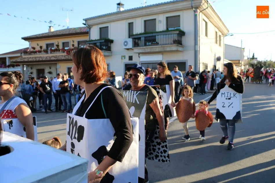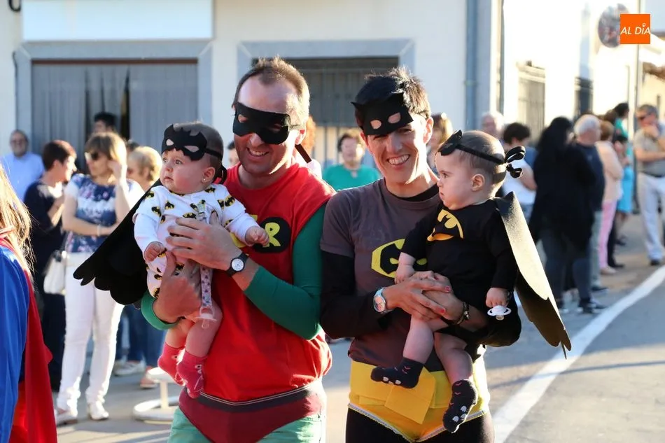 Superhéroes, una gran encina símbolo del Campo Charro, todo un apetitoso desayuno con galletas María, una parodia sobre la etapa de Isabel Pantoja entre rejas y la corte de honor con las seis niñas y tres niños que han tomado la Primera Comunión, animaban el desfile de carrozas que daba paso a la colocación de las bandas a las integrantes de la Corte de Honor y un escudo para ellos, episodio que corría a cargo del alcalde de Boada, Matías Garzón.