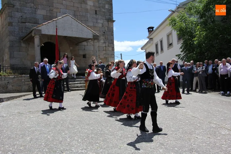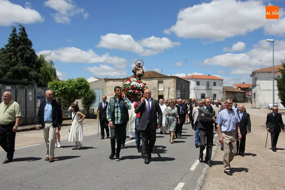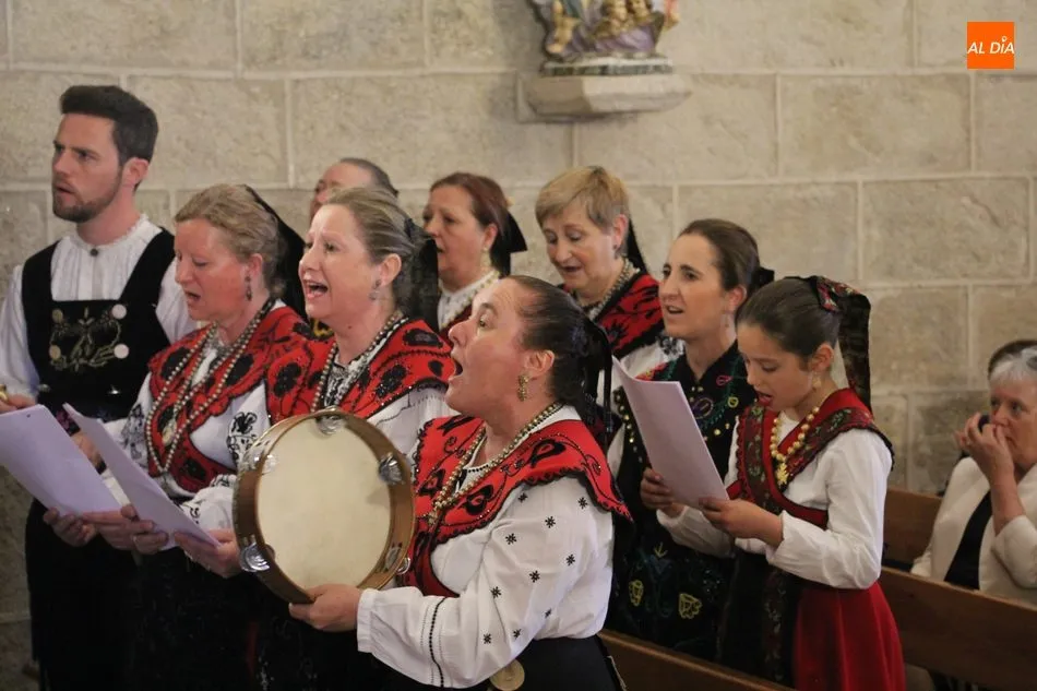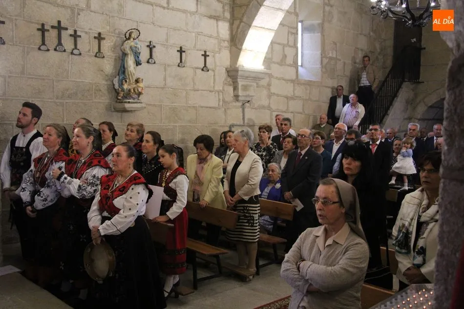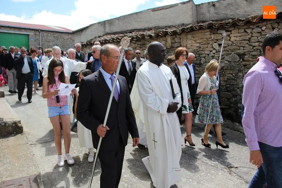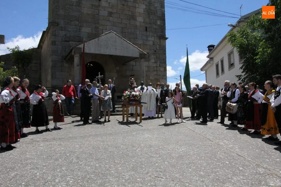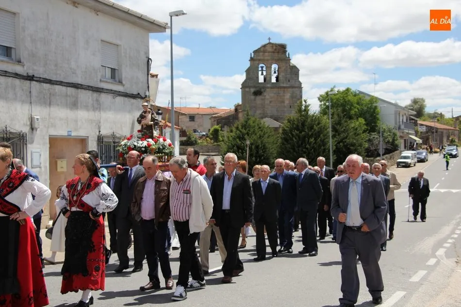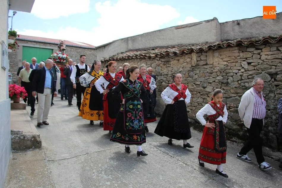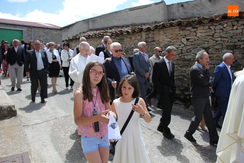 La jornada arrancaba con una misa castellana concelebrada y presidida por el párroco Claudio, ceremonia que estuvo amenizada por el grupo de folclore Tresbolillo, de Villamayor de Armuña, y a la que seguiría la procesión por las calles del pueblo.