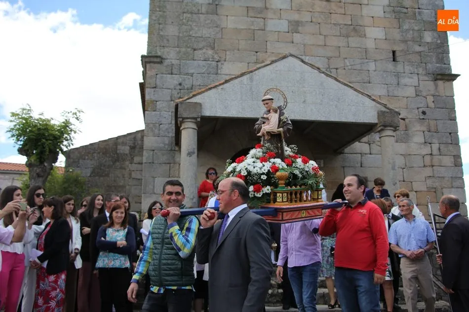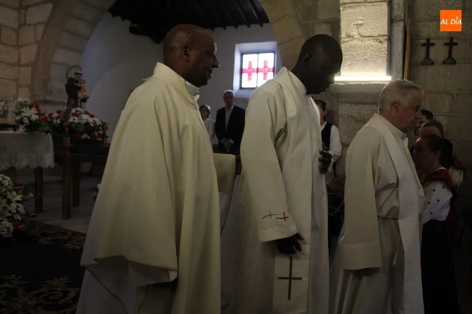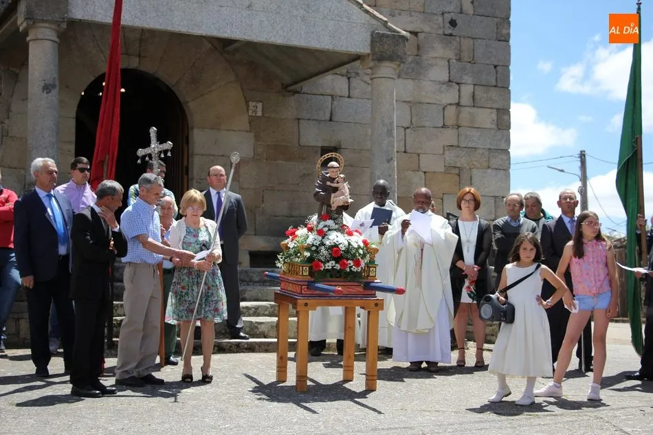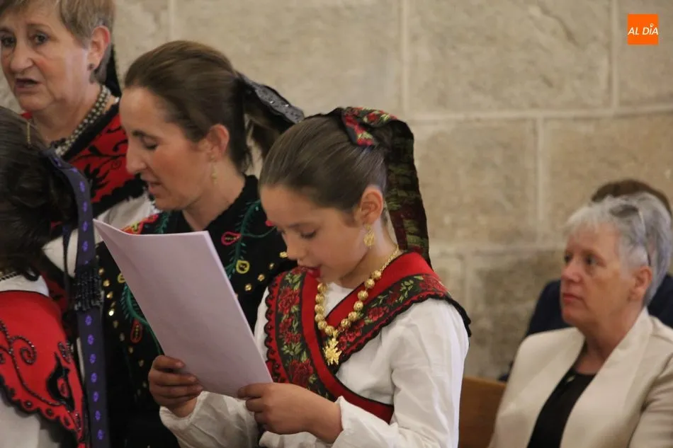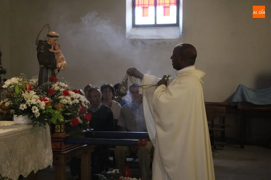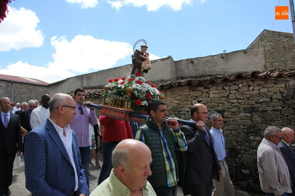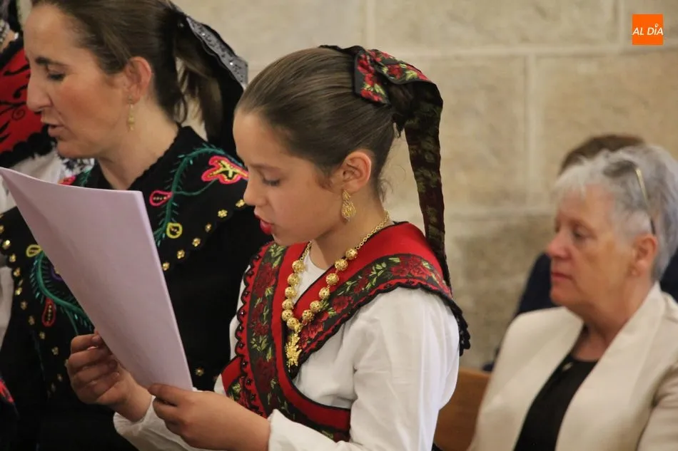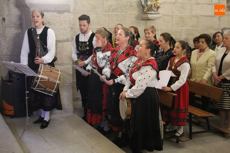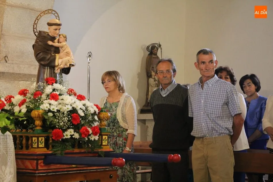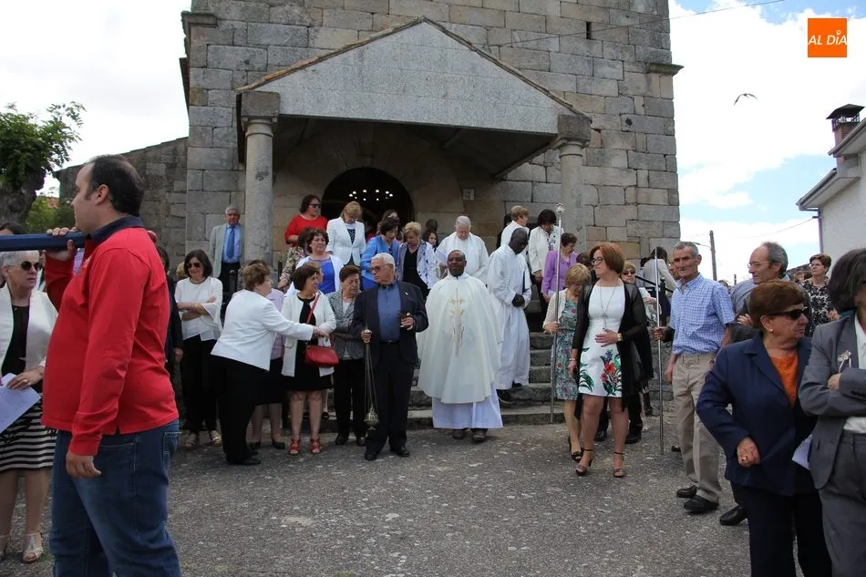 La jornada arrancaba con una misa castellana concelebrada y presidida por el párroco Claudio, ceremonia que estuvo amenizada por el grupo de folclore Tresbolillo, de Villamayor de Armuña, y a la que seguiría la procesión por las calles del pueblo.