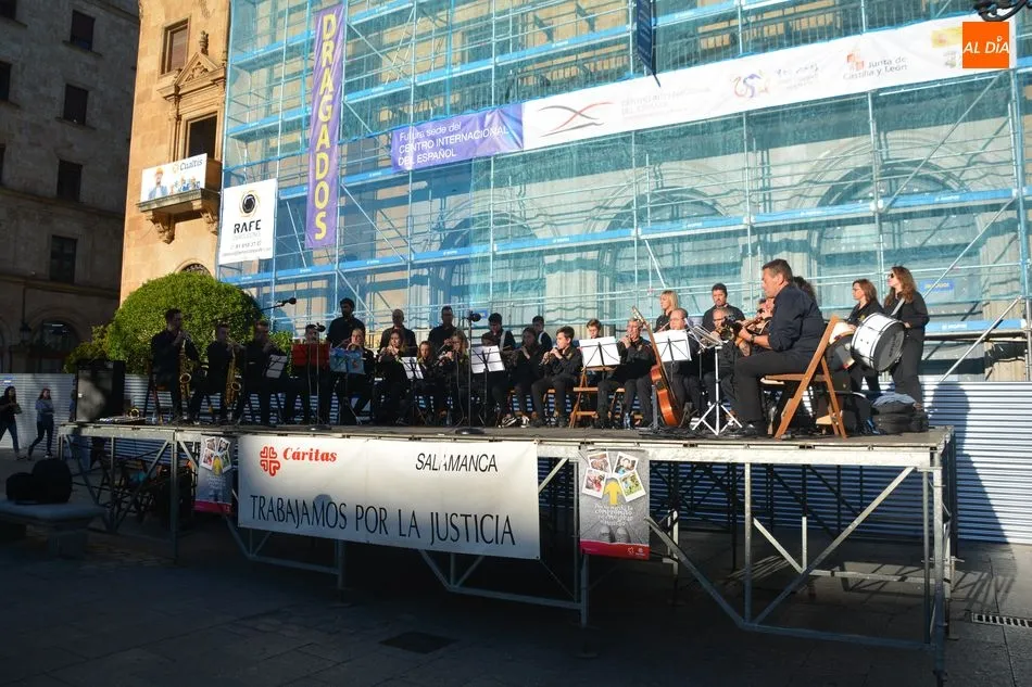 La Plaza los Bandos ha acogido este sábado el concierto de Escuela de Dulzaina y Percusión Tradicional de Macotera, organizado por Cáritas dentro de la programación del Día de Caridad. Público de todas las edades ha tenido la oportunidad de disfrutar del repertorio de música tradicional.