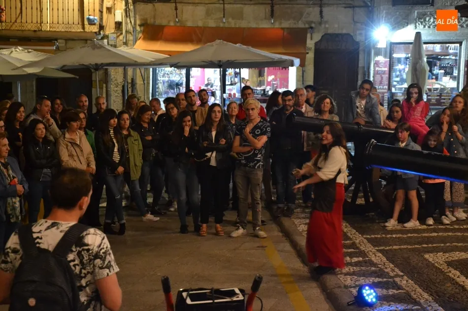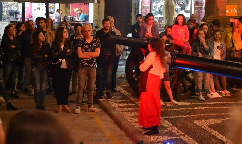Si en esa primera cita del fin de semana hubo alrededor de un centenar de espectadores, en la noche del sábado la asistencia fue bastante más amplia, contándose con alrededor de 160-170 espectadores, que hicieron un trayecto que comenzó en la Plazuela de Herrasti y finalizó en el foso izquierdo de la Rúa del Sol, a donde se ?obligó? a bajar a todo el público que había llegado hasta allí.