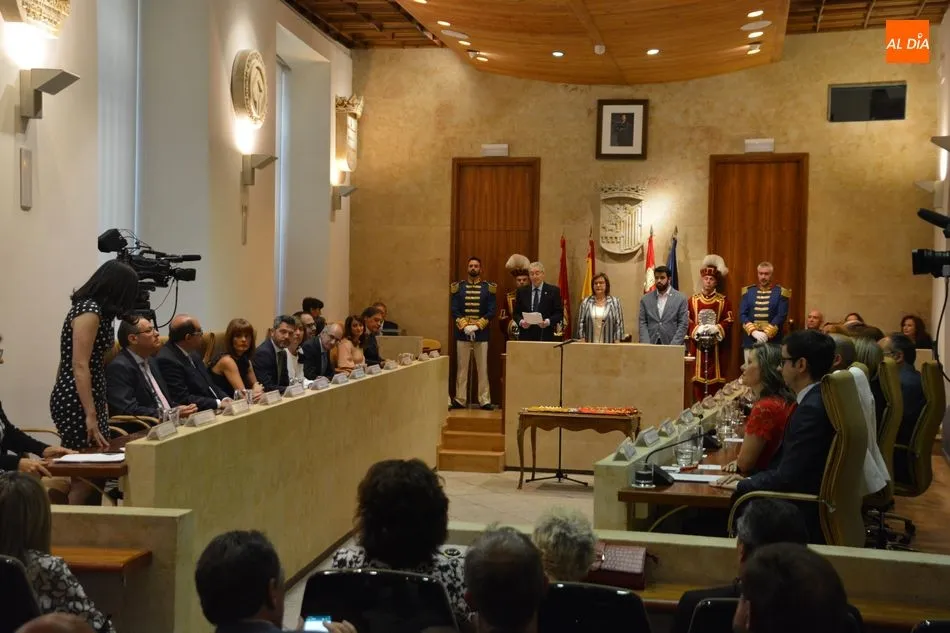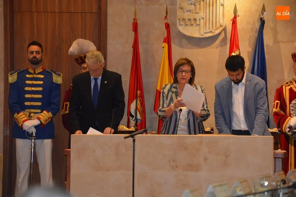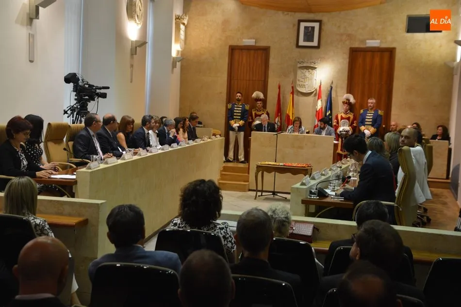El pleno de Salamanca ha comenzado con la constitución de la Mesa de Edad, formada por los concejales de mayor y menor edad, Isabel Macías Tello y Álvaro Antolín, respectivamente. Posteriormente, los 27 concejales electos han tomado posesión de sus cargos, jurando o prometiendo acatar la Constitución, fórmula que solo varió el concejal del PSOE José María Collados, que prometió ?por los vecinos? y ?por los humildes?, entre otros.