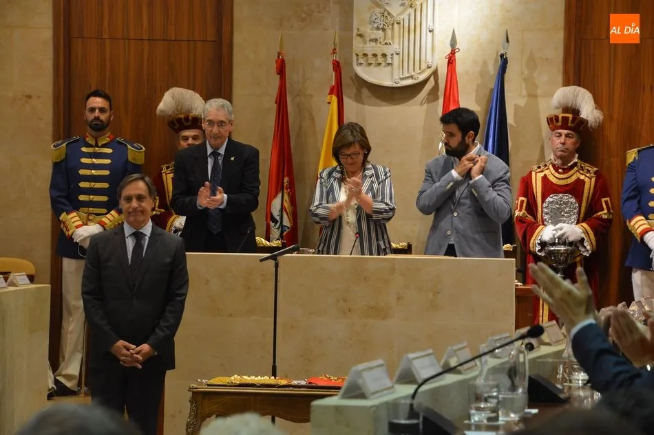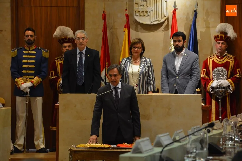 ?El voto?, añadió, ?es el ejercicio de uno de nuestros principales derechos democráticos. La formación de mayorías de gobiernos municipales es el ejercicio del derecho de representación, y algunas de las frases ofensivas que hemos escuchado no son más que el ejercicio del derecho al pataleo?, en alusión a la intervención de José Luis Mateos, del PSOE. ?Hoy empieza una nueva etapa, apasionante y prometedora; que estará liderada por un equipo de personas comprometidas, capaces y cualificadas, que vamos a poner en marcha un proyecto serio, ambicioso y realizable, centrado en Salamanca y en nuestro futuro?, subyarando que ?me comprometo a trabajar los próximos cuatro años para que Salamanca siga creciendo, en riqueza y en empleo, y los salmantinos tengamos más oportunidades; a modernizar los barrios y hacerlos más accesibles; a potenciar los servicios municipales, para que el día a día de los ciudadanos resulte más cómodo y Salamanca se distinga por ser una ciudad segura, limpia, abierta y acogedora?.