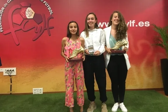La jugadora de 1ª Regional Ángela Lamazares, por ser debutante en la Sub15 femenina; y Paula Sánchez y Sara de Prado, de 1ª Regional y Alevín con la Bota de Oro como jugadoras de la Sub15 y Sub12 femenina