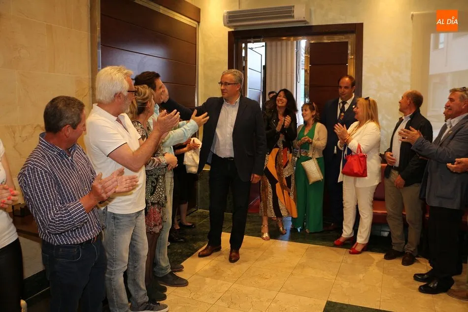 Tras el pleno de investidura que el pasado sábado, 15 de junio, conformó la nueva Corporación Municipal para los próximos 4 años, Julián Ramos, ya exalcalde de Guijuelo, recibió una grata sorpresa en forma de fiesta de despedida por parte de los empleados municipales. La plantilla municipal rindió homenaje a Ramos por sus 14 años en el desempeño del cargo, con un discurso por parte de Agustín Berrocal, secretario del Consistorio, en nombre de todo