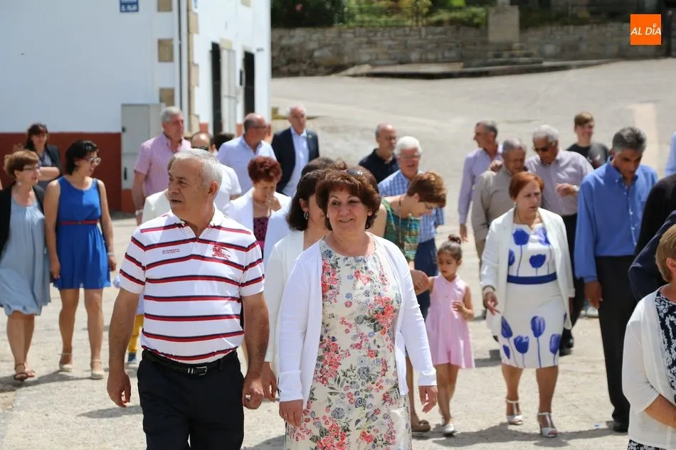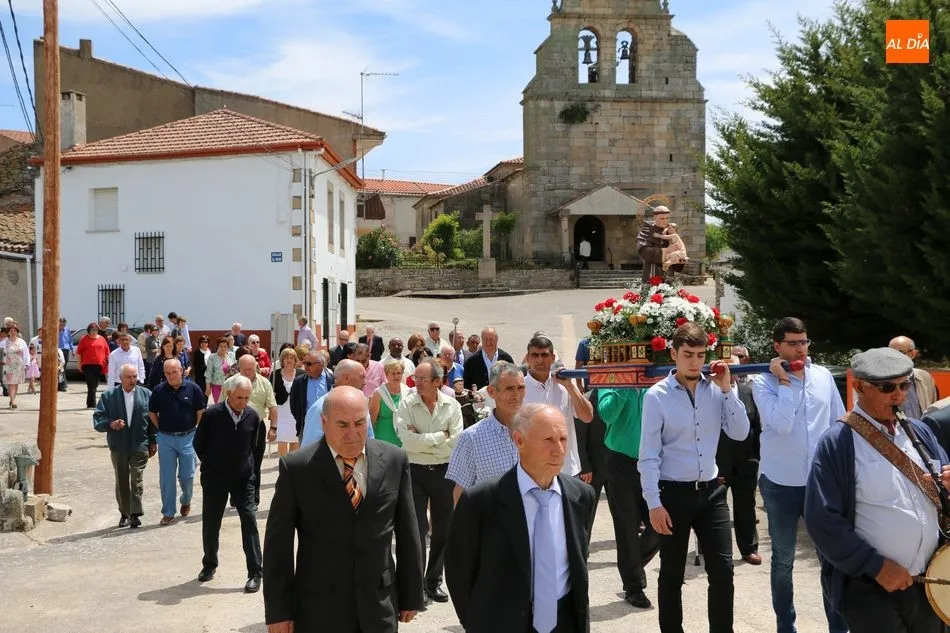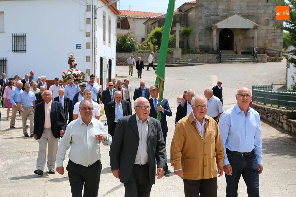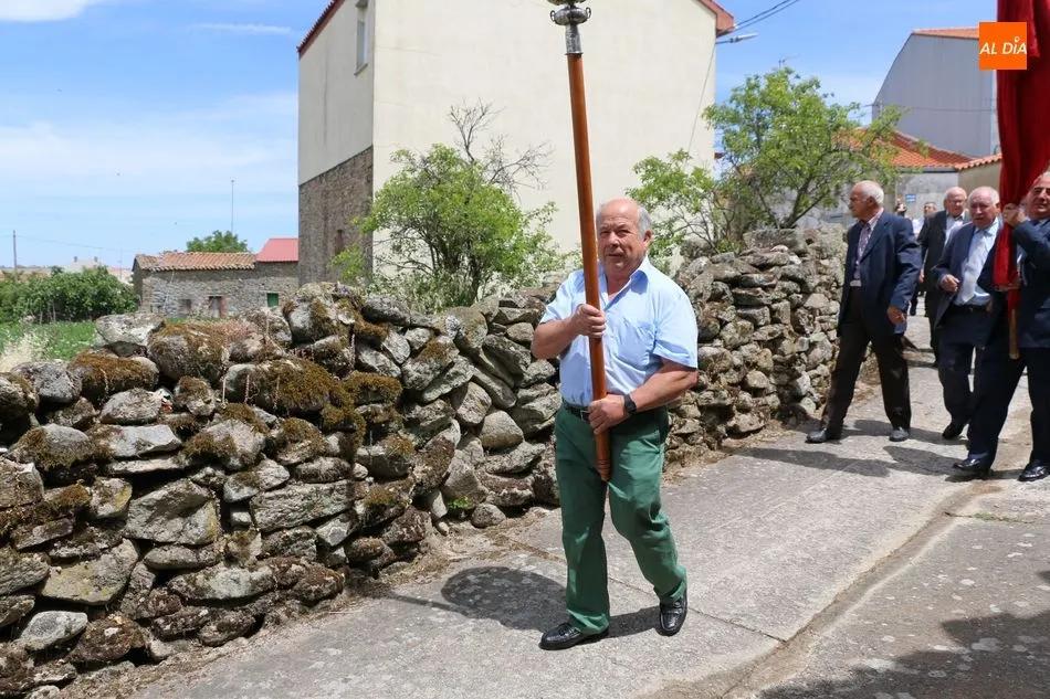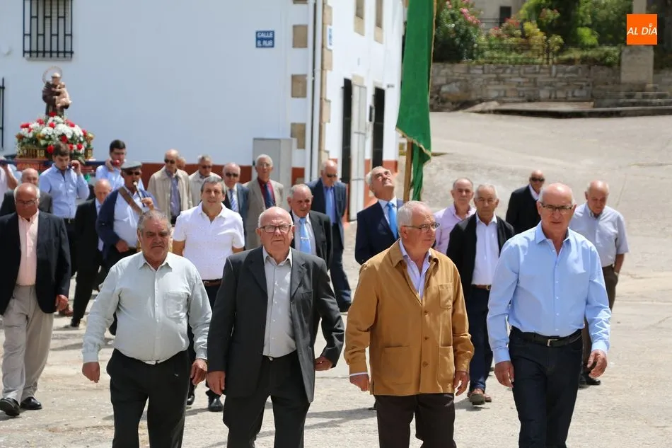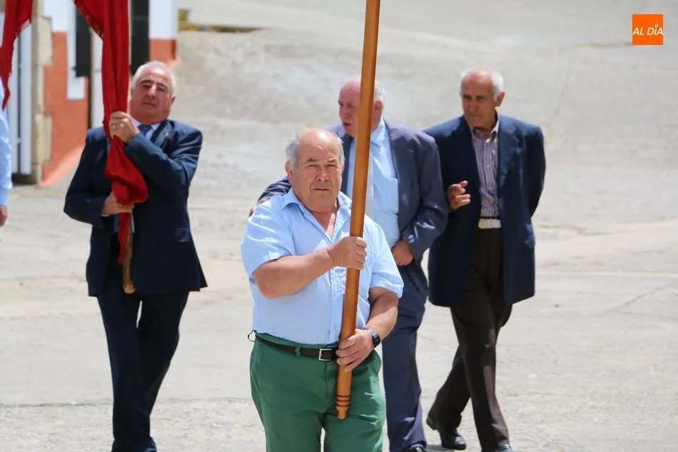 Presidida por los mayordomos, José Manuel Vicente Sánchez, representando a la Corporación municipal que preside y la jueza de paz, Catalina Vicente Hernández, la comitiva recorrió las calles del pueblo al son de la gaita y el tamboril de Arcadio.