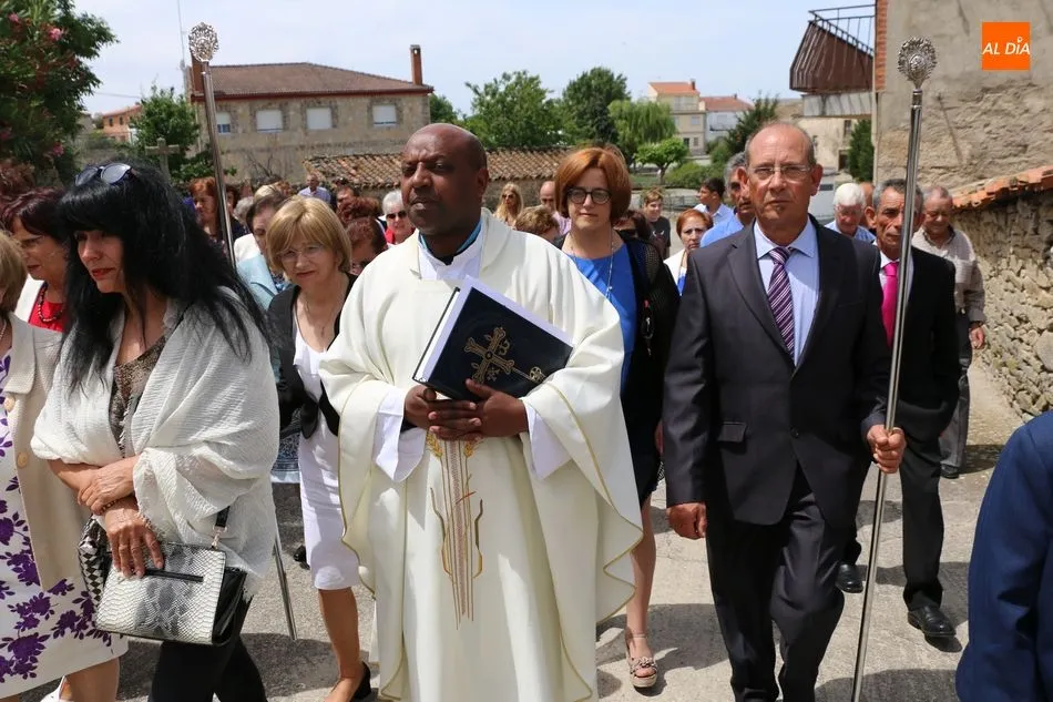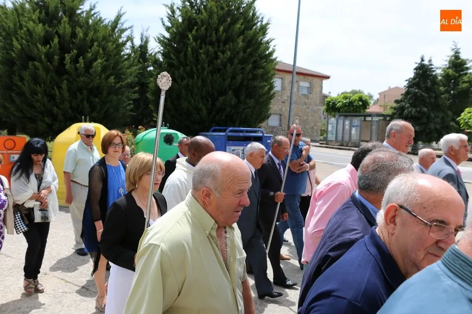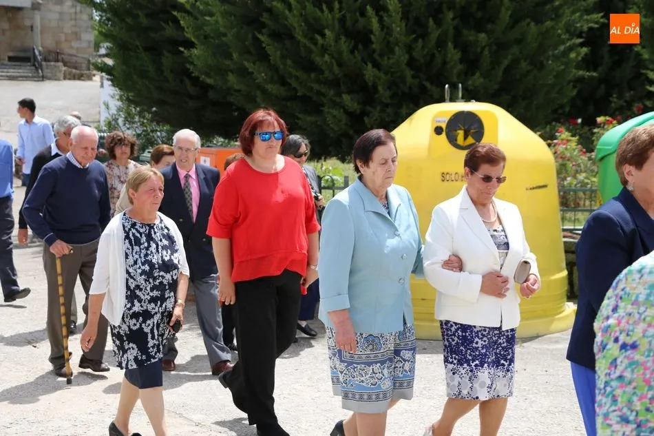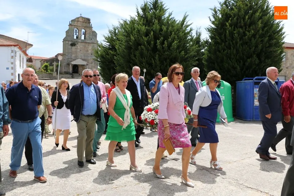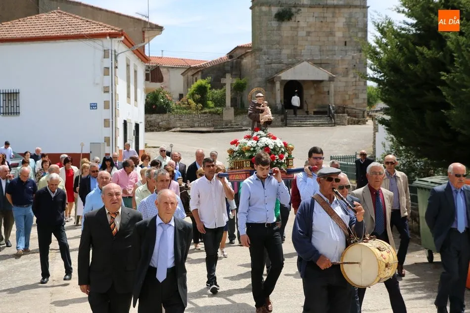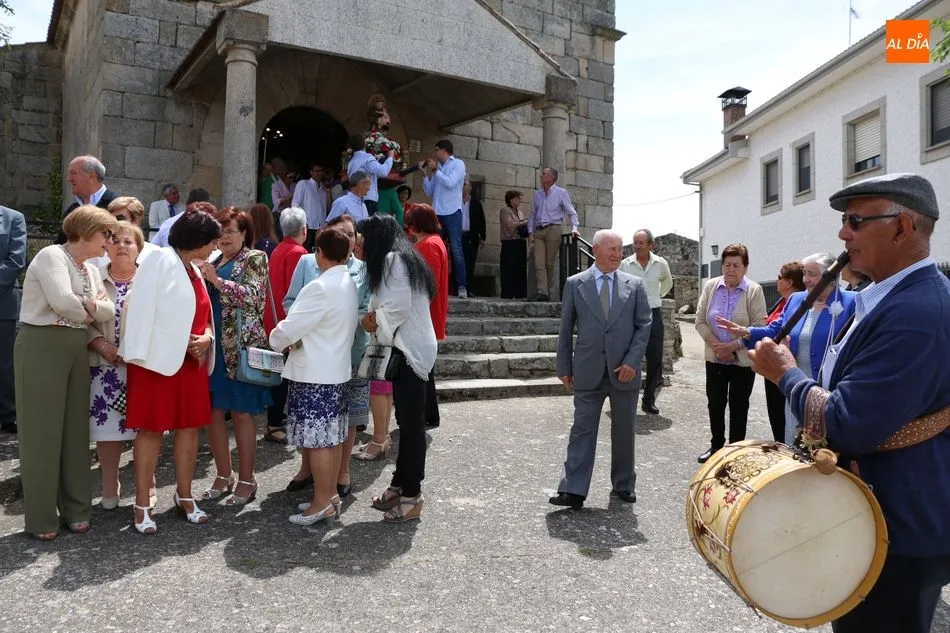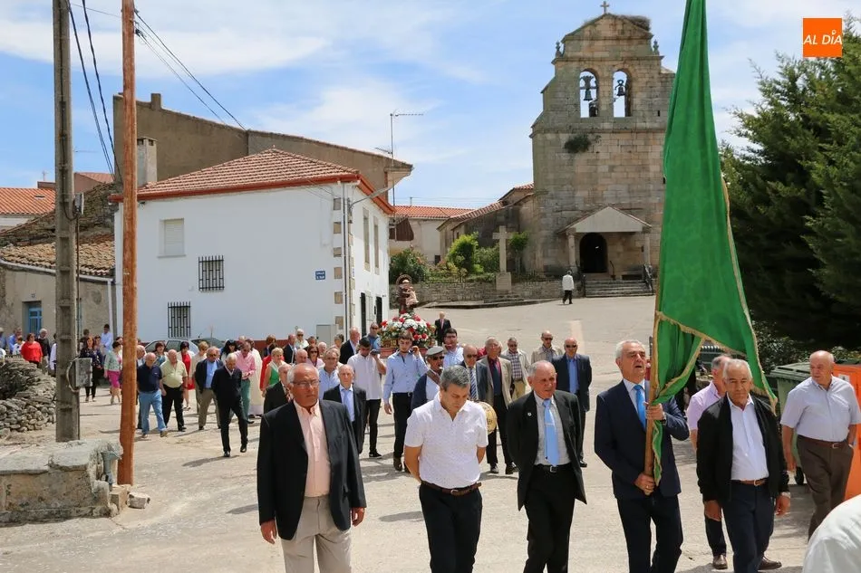 Presidida por los mayordomos, José Manuel Vicente Sánchez, representando a la Corporación municipal que preside y la jueza de paz, Catalina Vicente Hernández, la comitiva recorrió las calles del pueblo al son de la gaita y el tamboril de Arcadio.