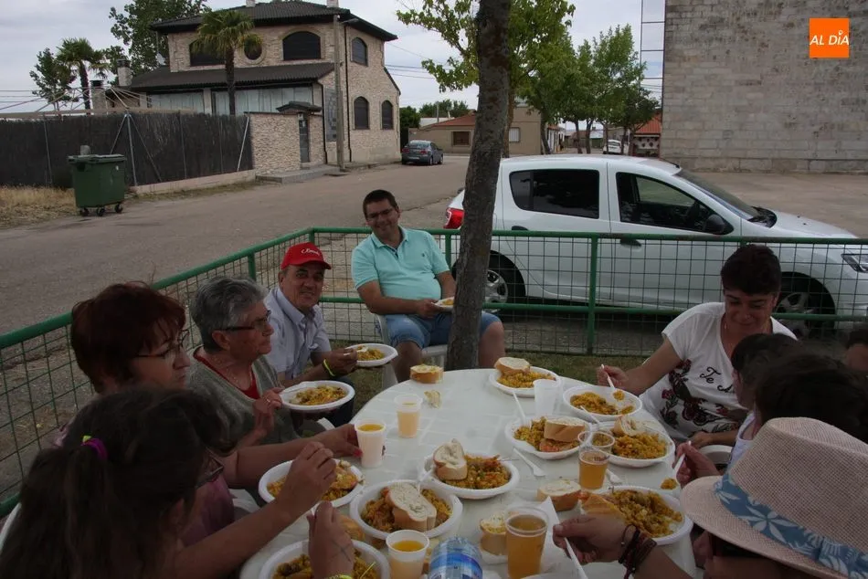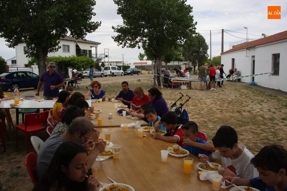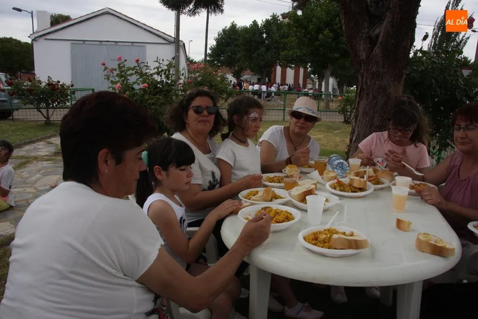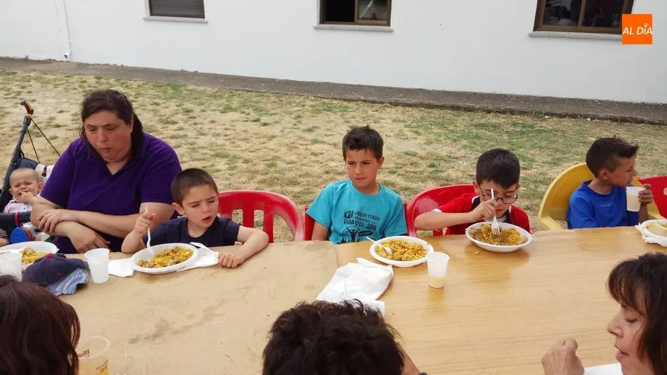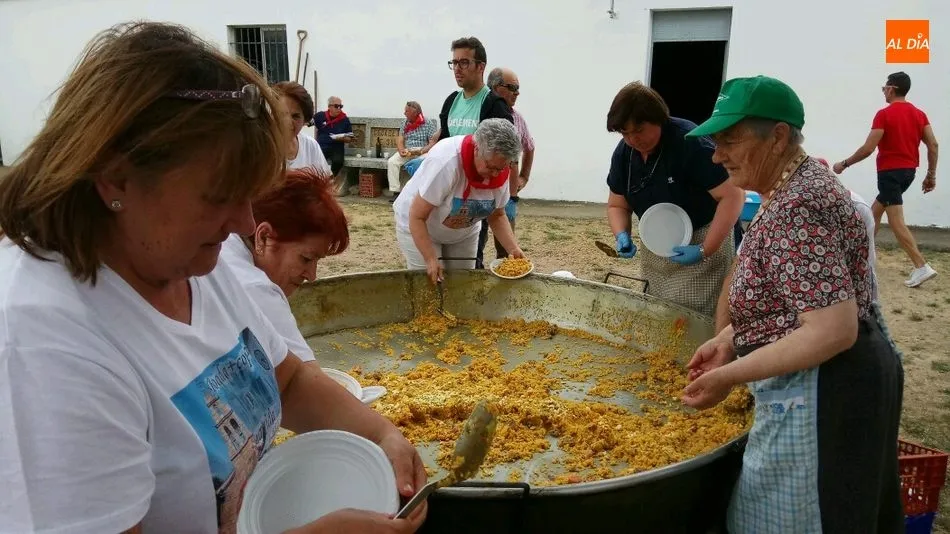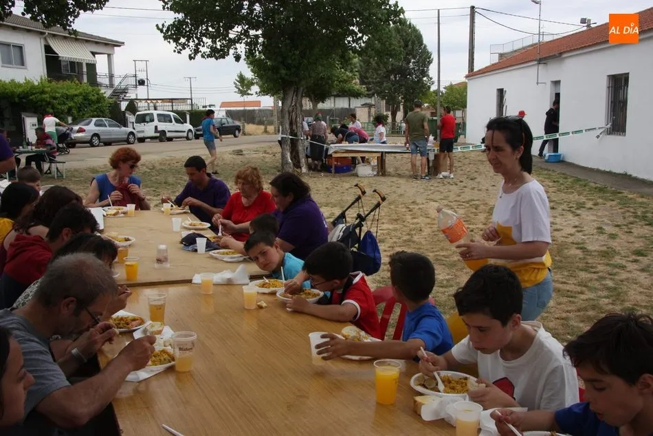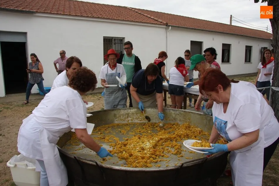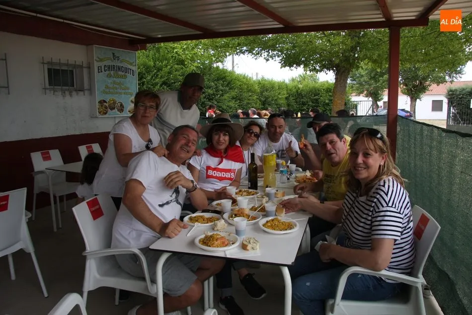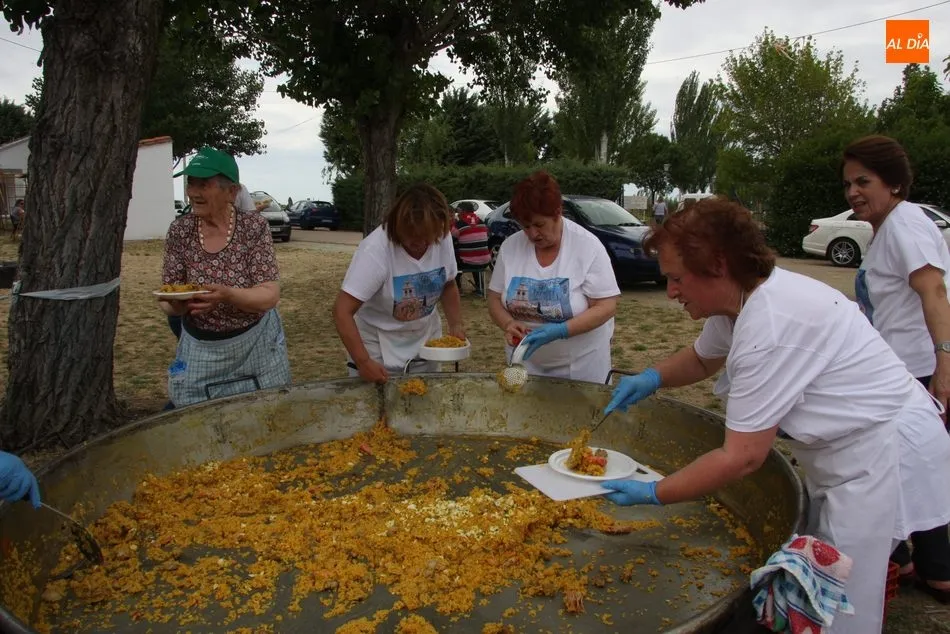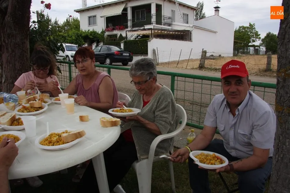 Los vecinos de Boada enfilan ya la recta final de sus fiestas del Santísimo, y lo hacían este lunes con una exquisita paella preparada por el grupo habitual de colaboradoras, 300 raciones de arroz de las que no sobró casi nada, y que fueron acompañadas con una dulce rodaja de melón.