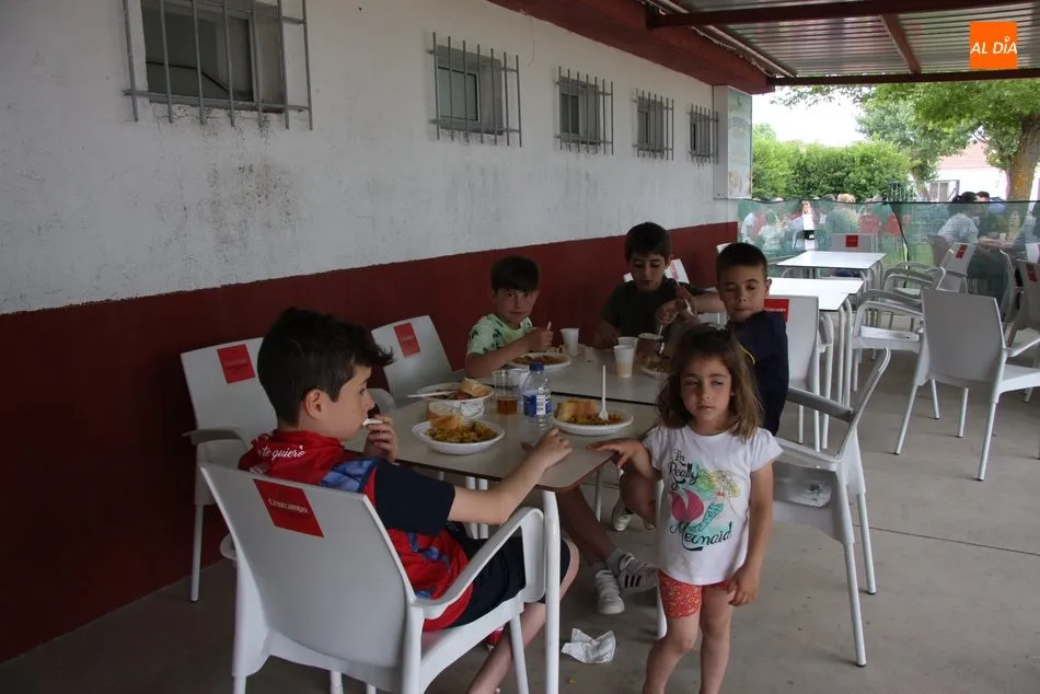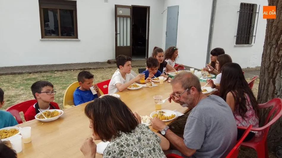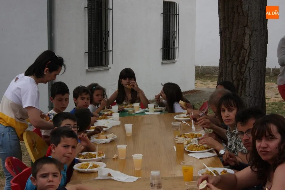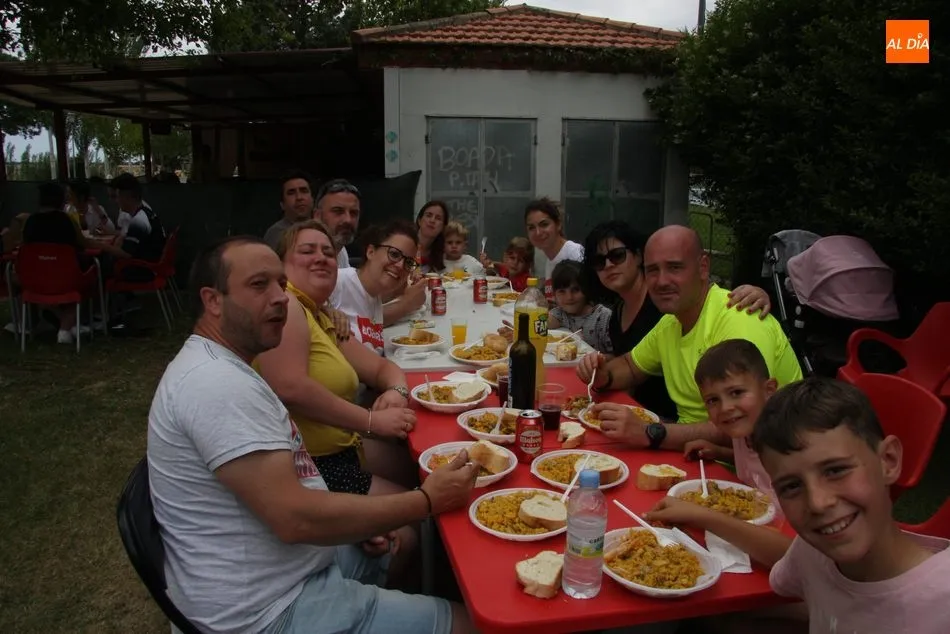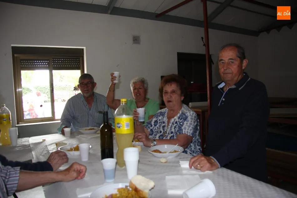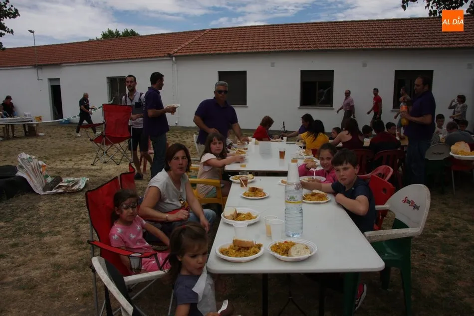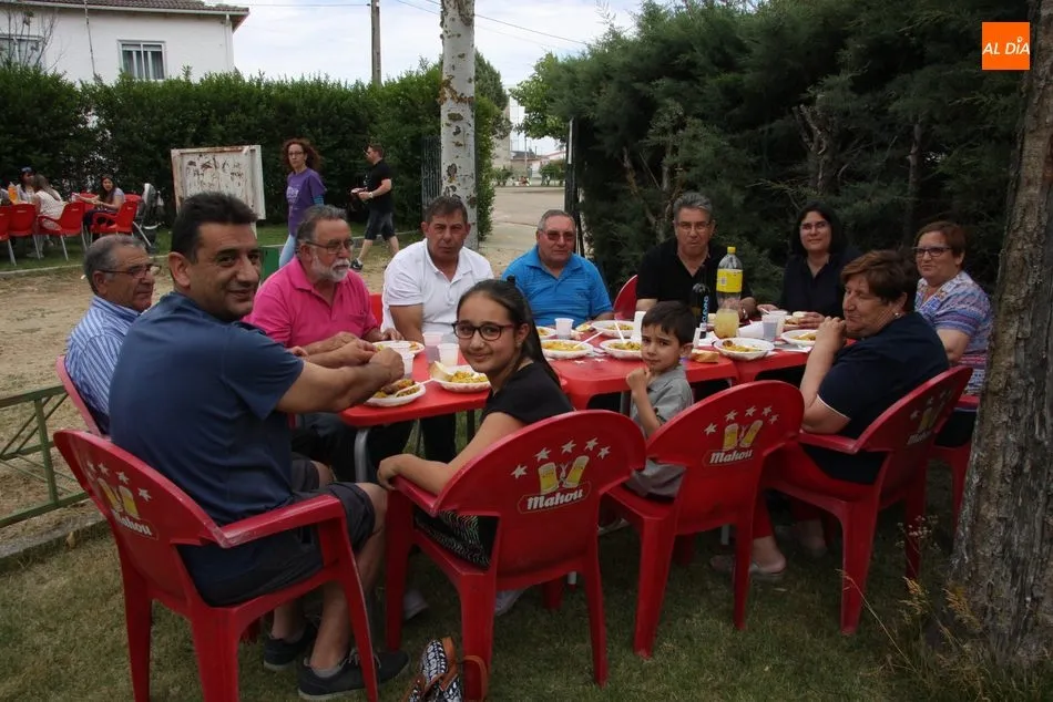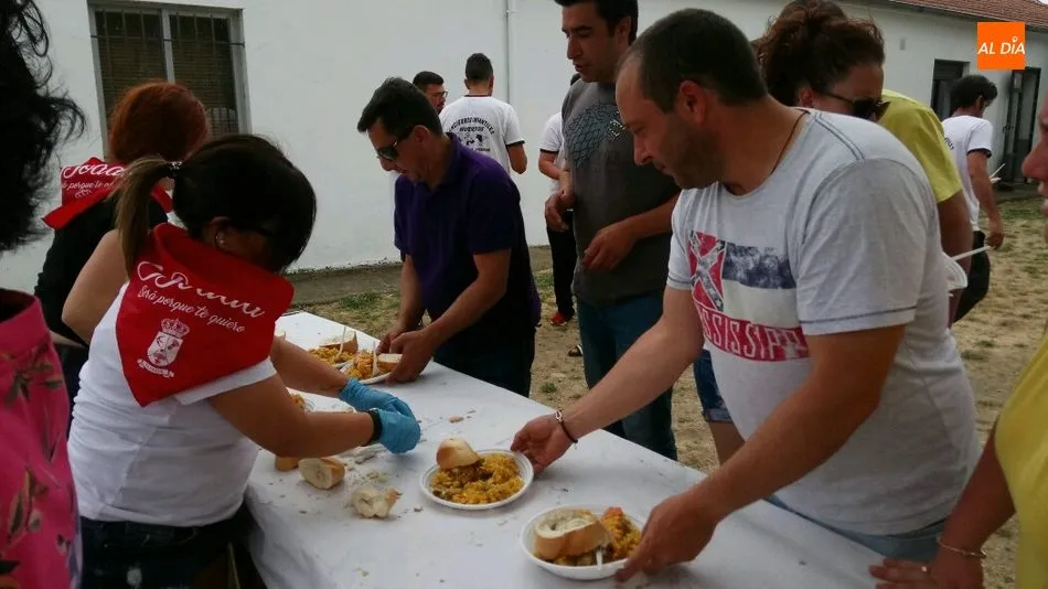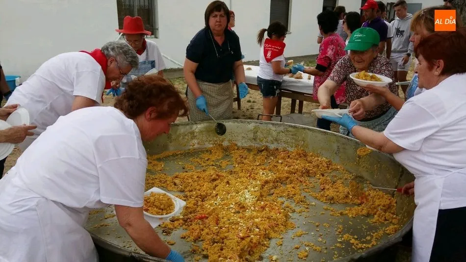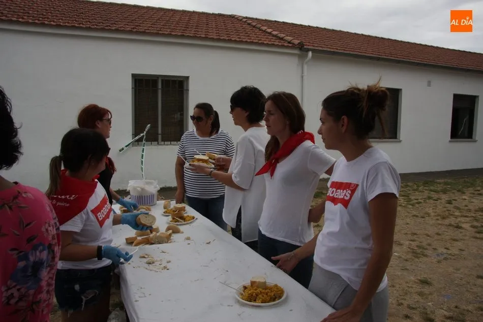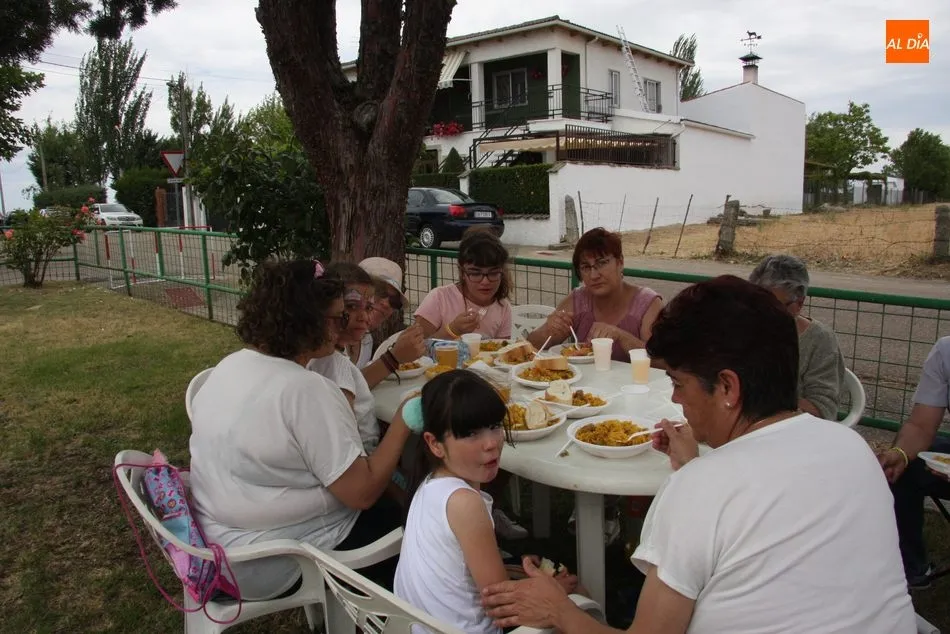 Los vecinos de Boada enfilan ya la recta final de sus fiestas del Santísimo, y lo hacían este lunes con una exquisita paella preparada por el grupo habitual de colaboradoras, 300 raciones de arroz de las que no sobró casi nada, y que fueron acompañadas con una dulce rodaja de melón.