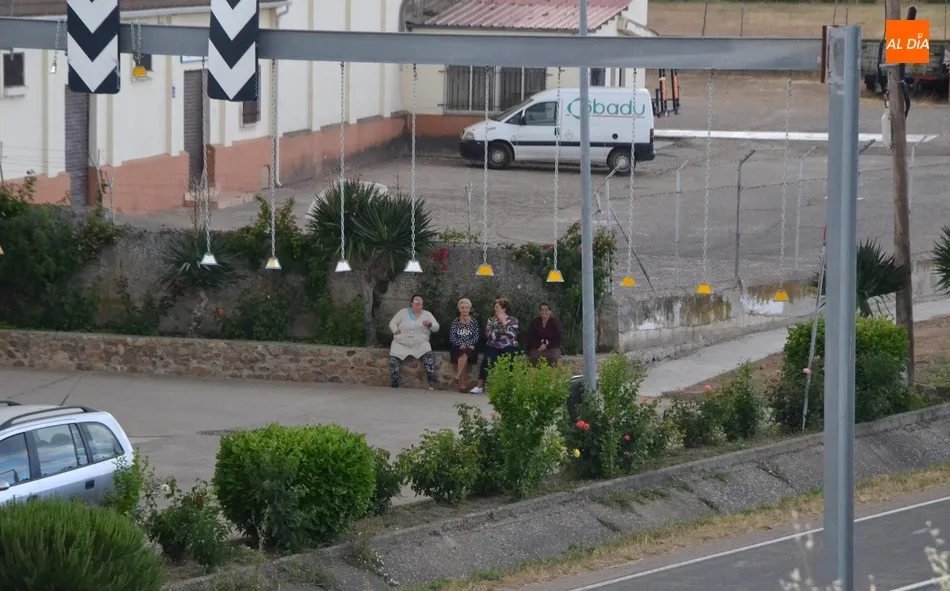 En la imagen aparece un grupo de vecinas del Barrio de la Rana de Ciudad Rodrigo, que estaba dirigiendo sus miradas en el tramo final de la tarde del miércoles a la cercana vía del tren, o mejor dicho, a las obras de construcción de un paso para peatones bajo la vía que poco a poco van avanzando. En el momento de tomarse las imágenes, la tarde estaba de lo más aceptable en lo meteorológico, pero apenas un par de minutos después el cielo empezó a chispear durante unos instantes, provocando que algunas personas tuvieran que buscar inmediatamente un refugio.