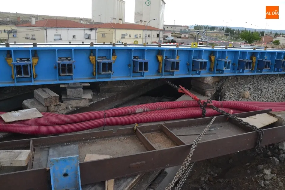 Lo que se está produciendo concretamente estos días es la introducción de forma mecánica bajo la vía del paso para peatones propiamente dicho ?que ha sido construido ?fuera?-, en un minucioso y ?silencioso? proceso diario que está despertando especialmente la curiosidad de los vecinos de la zona, que todos los días se acercan a ver cuánto ha avanzado cada mañana el paso hacia el interior, no estando ya lejos el momento en que empiece a asomar por el lado opuesto.