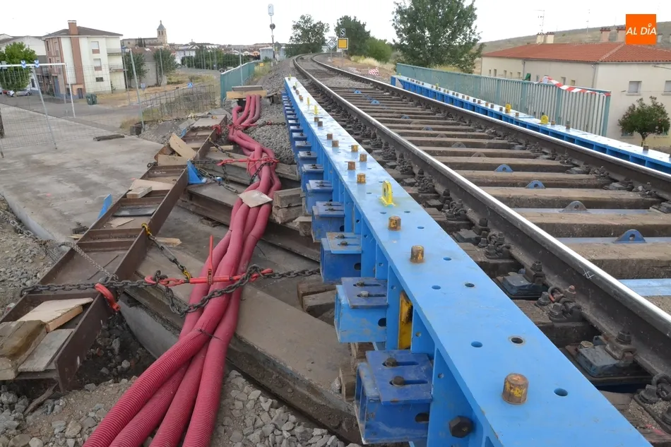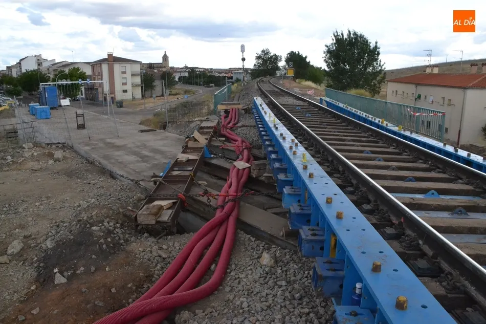 Al mismo tiempo que se está trabajando en la construcción del paso para peatones, se están llevando a cabo trabajos en las cercanías (dentro de lo que se podría considerar el recinto de la Estación de Tren de Ciudad Rodrigo) para proceder a la electrificación de la vía férrea, un largo proceso iniciado en Medina del Campo que culminará en Fuentes de Oñoro.