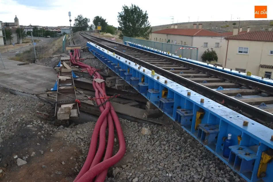 Hay que apuntar que, pese a que la obra está en lo que se puede considerar como el momento más ?delicado?, los trenes que pasan a diario por la vía (de pasajeros por las noches y de mercancías en varios momentos del día) lo siguen haciendo, pero eso sí, a una velocidad mucho más reducida, además de haberse reforzado el tramo de vía propiamente dicho (como se puede ver en las imágenes, se ha colocado un cartel para que los trenes no superen cierta velocidad).