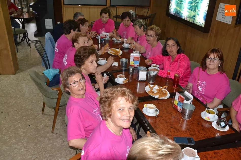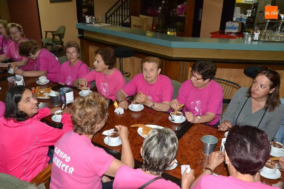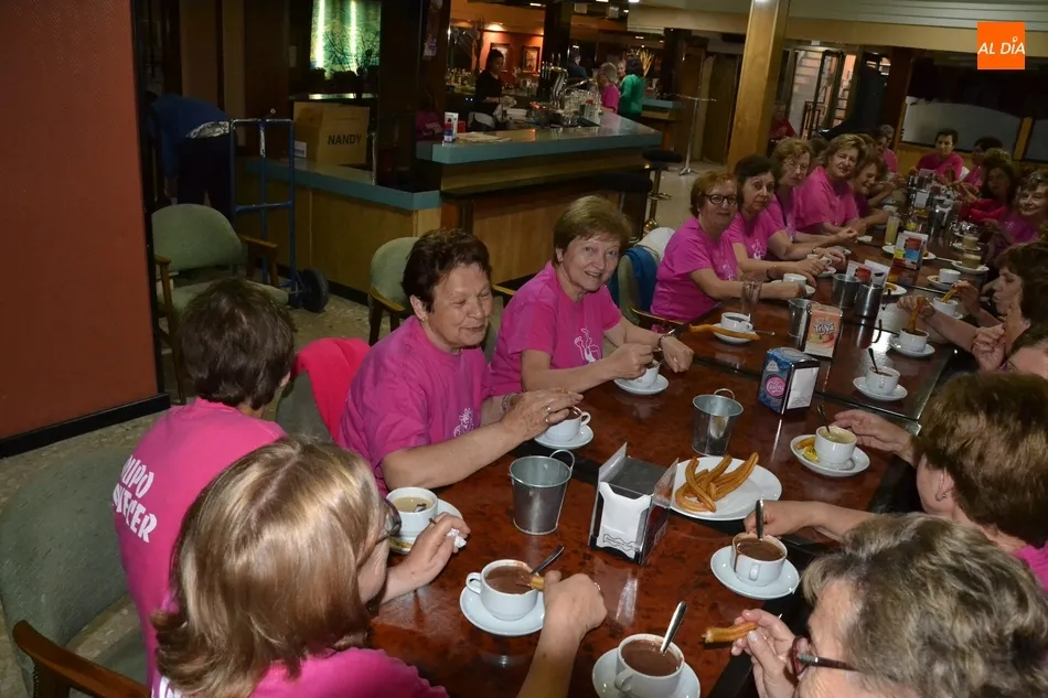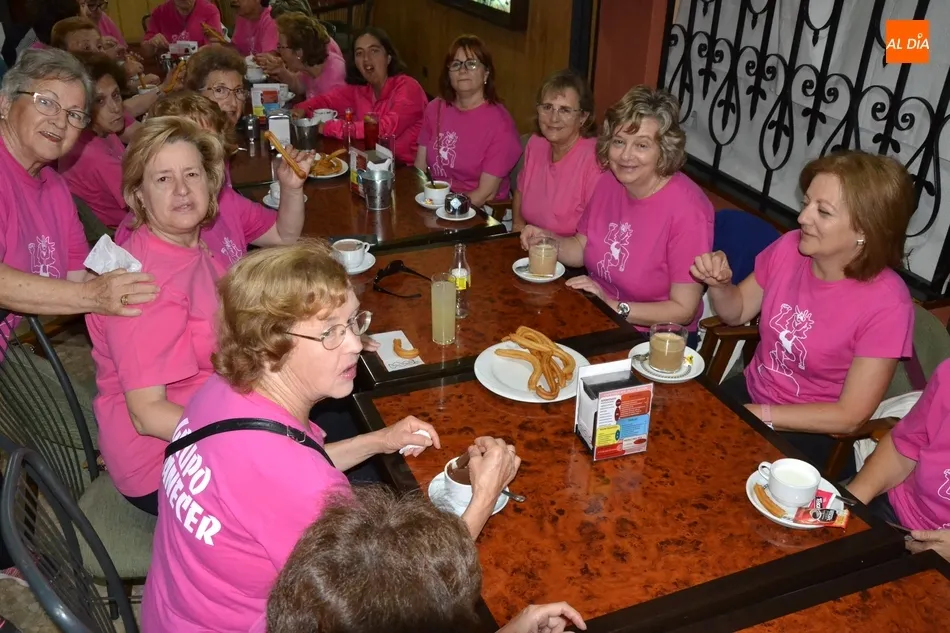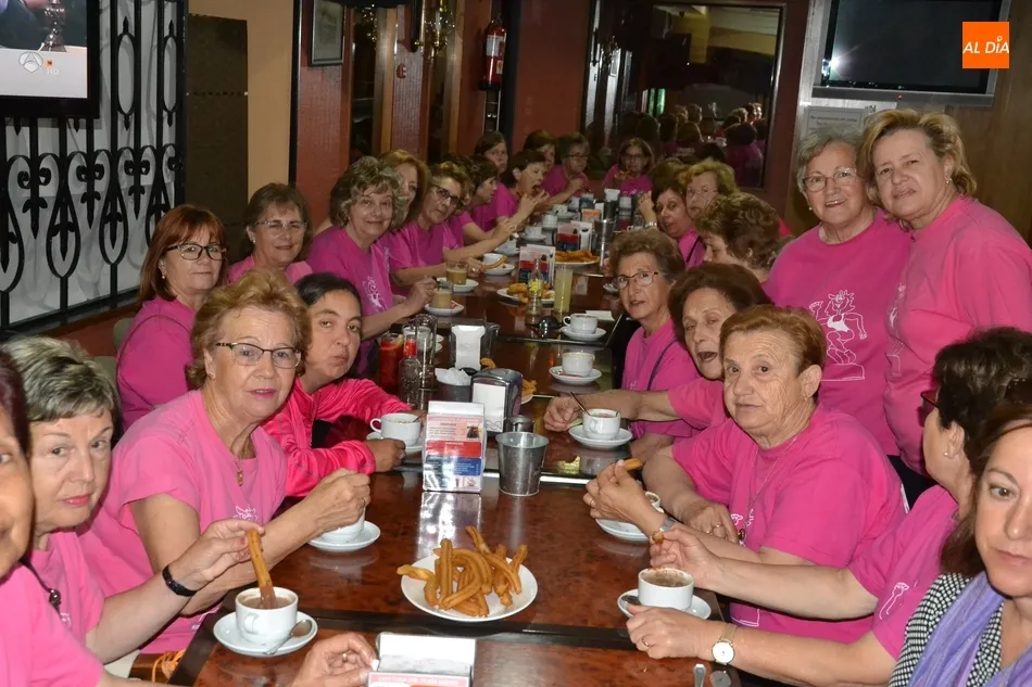 Concluida la última sesión, fue turno para que las asistentes al taller se acercasen al centro histórico para disfrutar todas juntas de un rico chocolate caliente con churros en el bar Plaza. La despedida definitiva del taller de gimnasia se produjo a las puertas de la Casa Consistorial, realizándose una foto de familia. La Asociación de Mujeres Amanecer rematará de forma definitiva el curso 2018/2019 yéndose a cenar el viernes todas juntas.