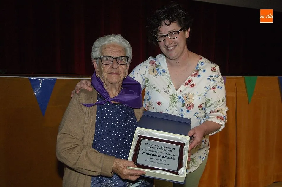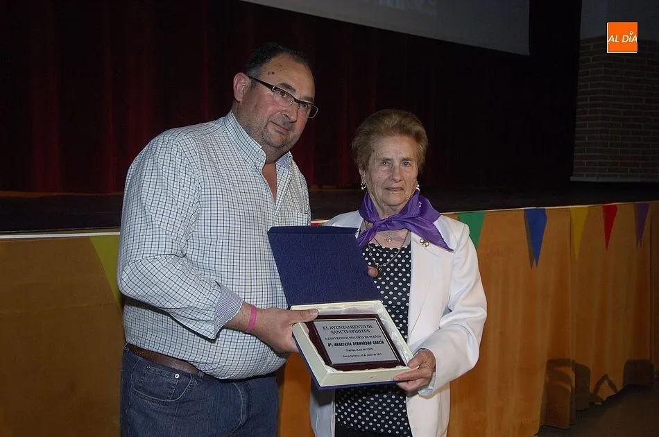 El acto, destinado a la presentación del programa festivo, tuvo dos homenajes. Por un lado, se entregaron placas a los 7 vecinos de la localidad que cumplen 90 años en este 2019: Ignacia García Sánchez, Josefa Moreno Sánchez, Matías Hernández Agudo, Anastasia Bernardos García, Margarita Márquez Martín, Ángela Rivas Martín y Agapito Benito Encinas (a varios de ellos se las recogieron familiares por no encontrarse en la localidad).