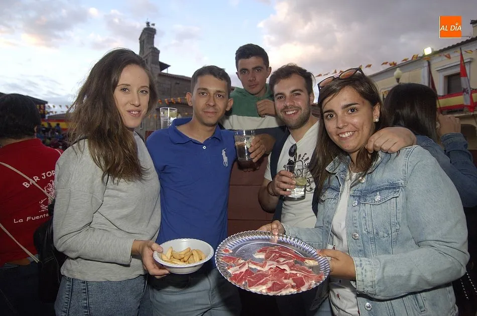 La larga jornada de jueves que vivió La Fuente de San Esteban dentro de sus fiestas del Corpus Christi incluyó un aperitivo taurino, que estuvo acompañado por otro tipo de aperitivo, en el denominado Toro del Jamón, que tuvo como escenario la Plaza Mayor y calles aledañas.