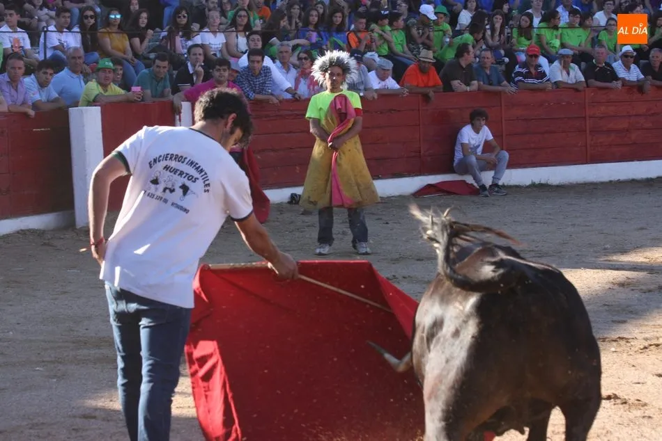 Otro de los espectáculos de la tarde era el encierro de carretones de Carlos Huertos, todo un acontecimiento para los más pequeños, que de este modo, también, adquieren afición a la Fiesta. Y todo esto aderezado por la animación de la charanga ?Queloque?s Band?, un excelente aperitivo antes de la verbena de esta noche, que correrá a cargo de la orquesta La Huella.