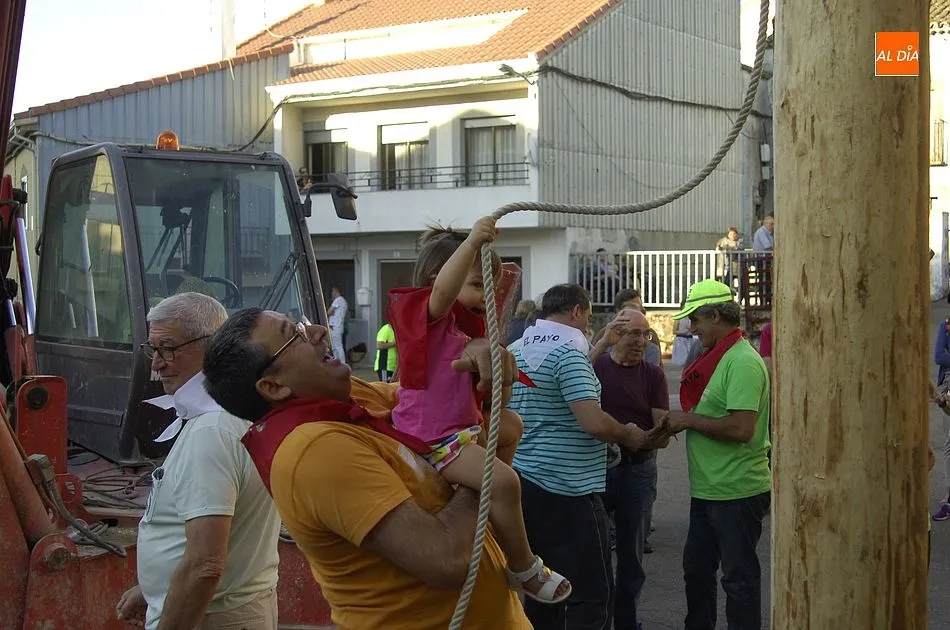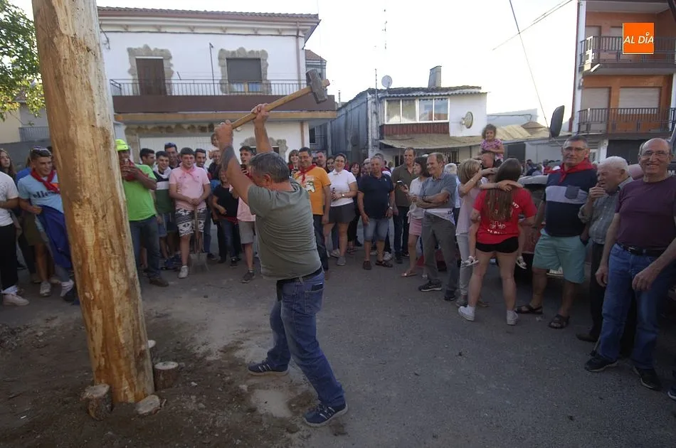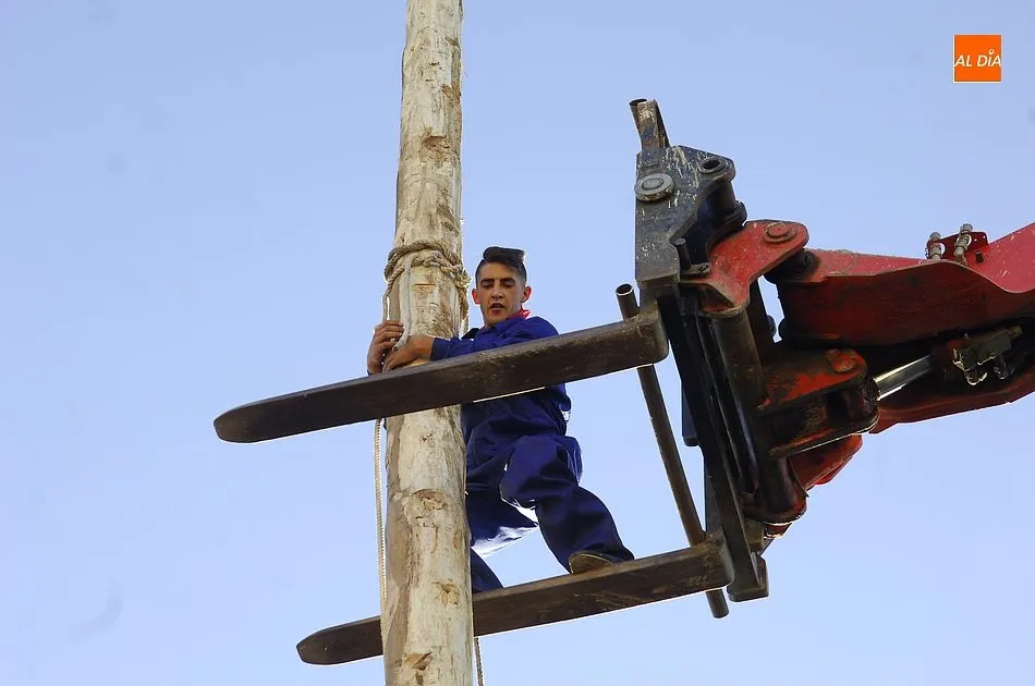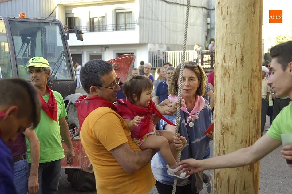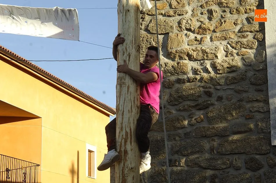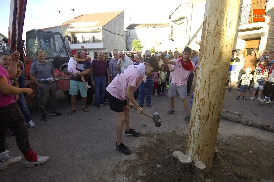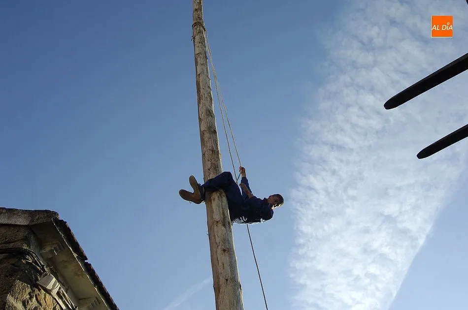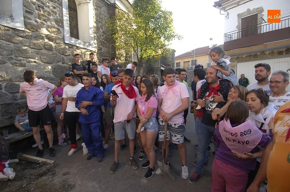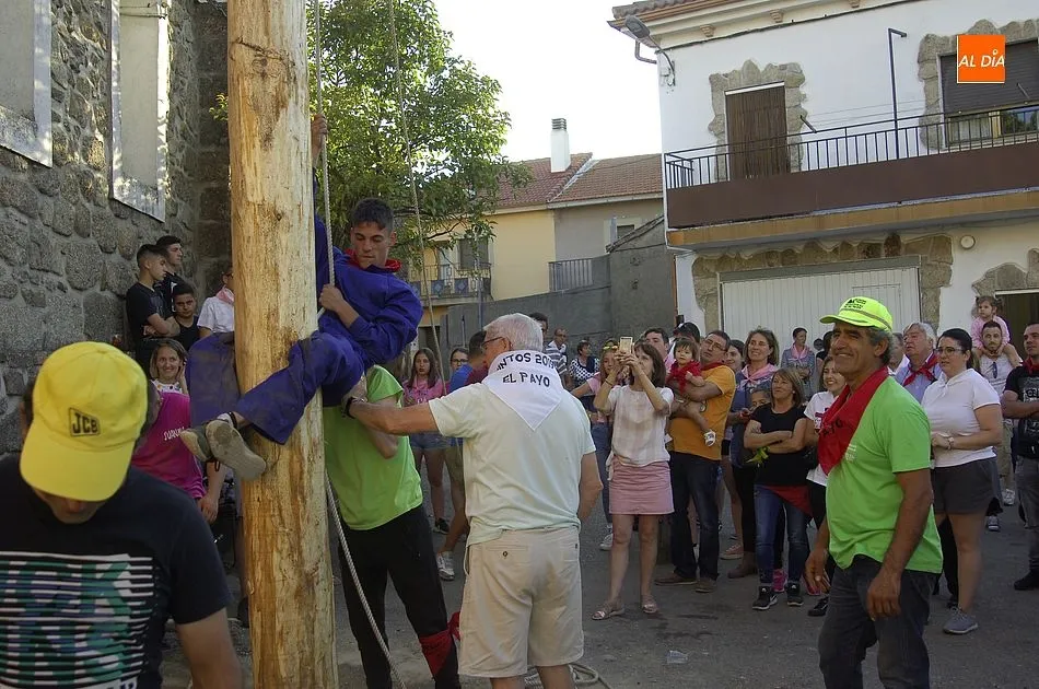 El acto de apertura del programa festivo fue el tradicional izado del pino, un rito que en El Payo recibe oficialmente el nombre de alzar la viga. Los grandes protagonistas de este acto fueron los 5 Quintos de las fiestas de este año: Cristian, Miguel, Lucas, Paula y Melani. Como manda la tradición, una vez plantado el pino en la plaza, estos jóvenes intentaron trepar por el mismo pero no tuvieron demasiado éxito en su andadura, salvo uno de ellos que sí llegó un poco más arriba dentro de los 25 metros con los que contaba el ejemplar.