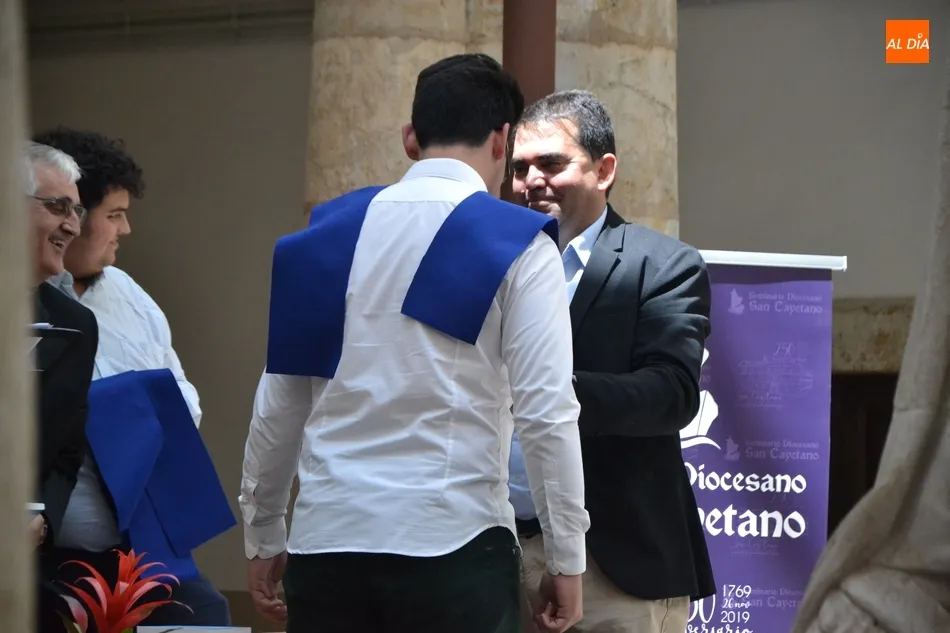 El largo carrusel de graduaciones que se ha vivido durante las últimas semanas en Ciudad Rodrigo con alumnos de Educación Infantil, Educación Primaria, Educación Secundaria, Bachillerato y Ciclos Formativos tuvo su último capítulo cronológicamente hablando en el Seminario Diocesano San Cayetano, que despidió por todo lo alto en la mañana del viernes a los 5 alumnos que han cursado este año 2º de Bachillerato en el centro.