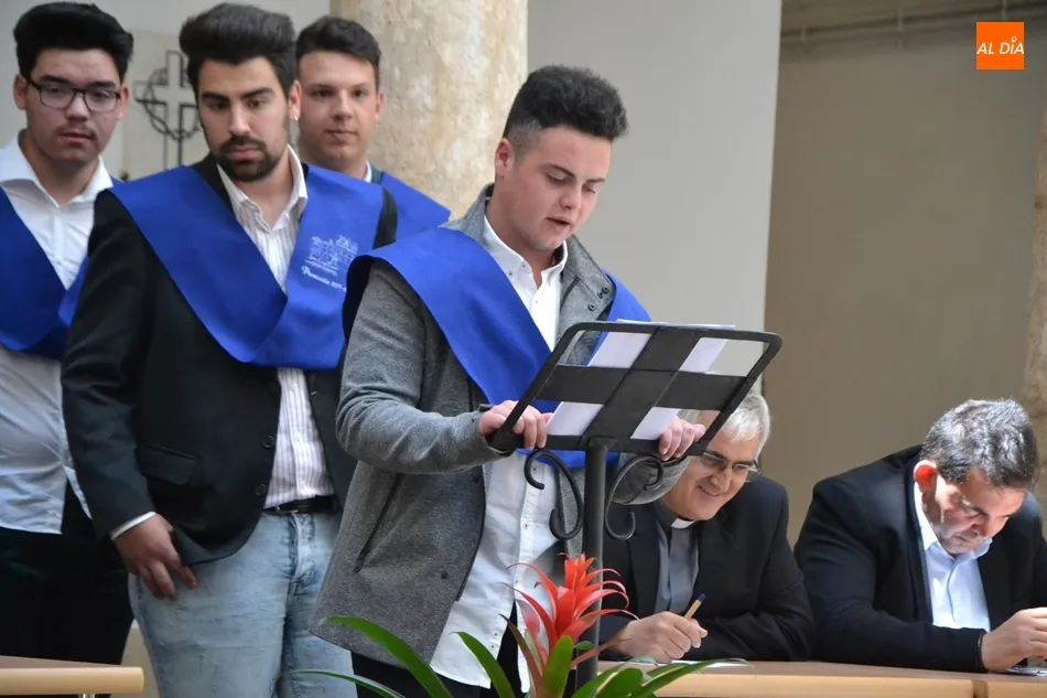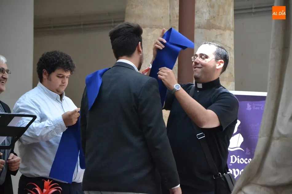 A continuación, llegó el momento de la imposición a los 5 alumnos de las becas de graduados y de regalarles un libro del Papa Francisco, antes de que fueran los propios graduados los que tomasen la palabra, para, por un lado, mostrar su agradecimiento a los formadores (?un pilar fundamental?), a los profesores, a sus antiguos compañeros, al resto de alumnos, al personal del Seminario, o al rector Juan Carlos Sánchez, ?por haberse portado como un padre durante nuestra etapa de seminaristas?.