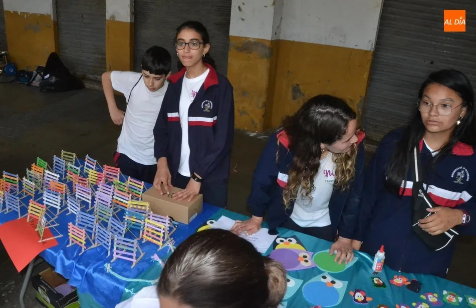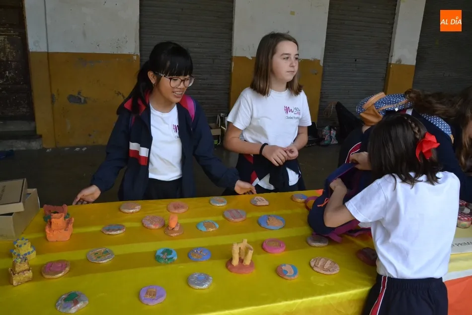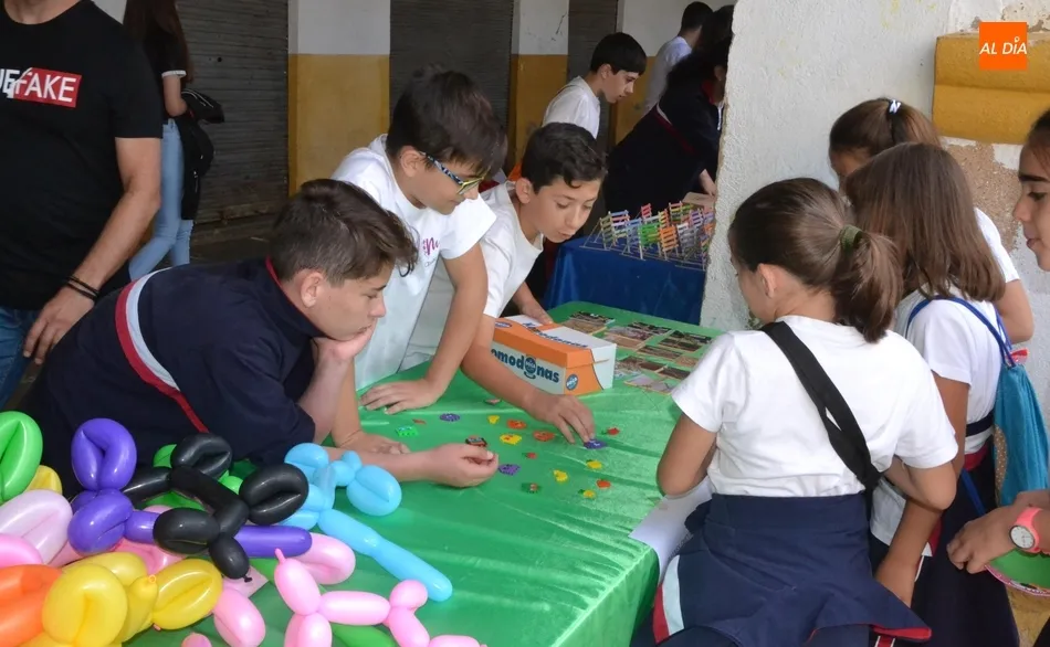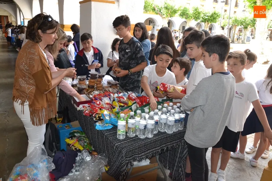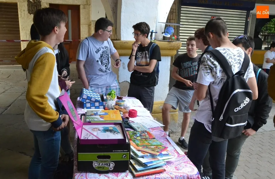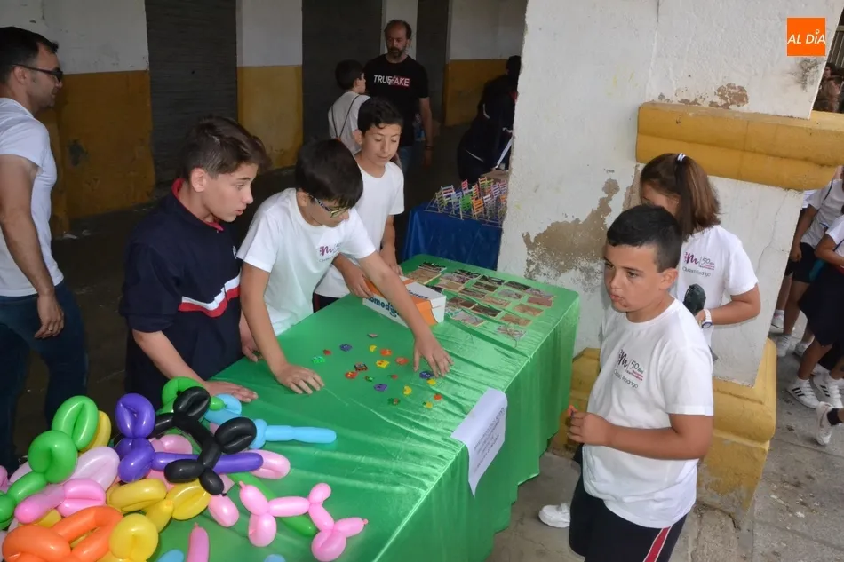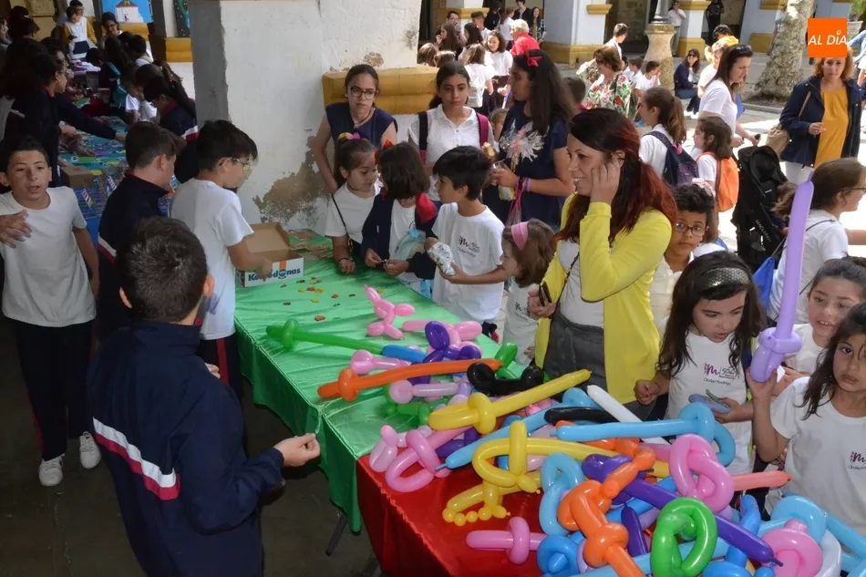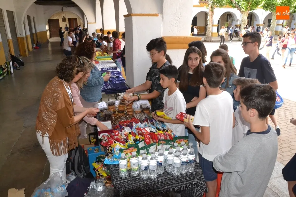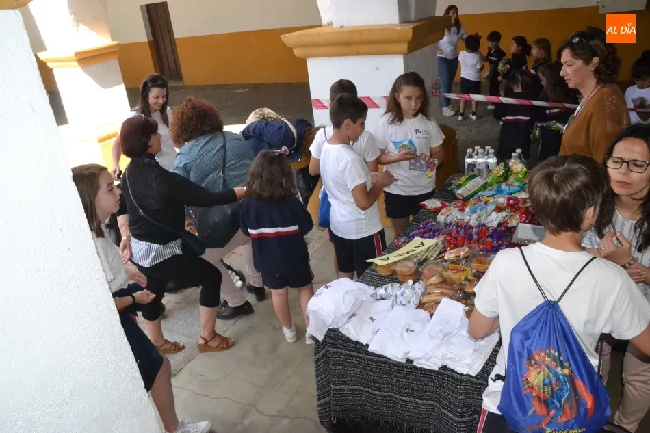 Finalizada esa actuación, empezó a funcionar un mercadillo solidario instalado por los diversos cursos en una de las zonas de soportales de la Plazuela, donde tuvieron a la venta objetos que han fabricado durante estos días en su Semana Cultural, además de otros elementos de mercandising del propio Colegio, y otros objetos usados a los que se quiere dar una segunda vida (como libros, mochilas, juguetes...).