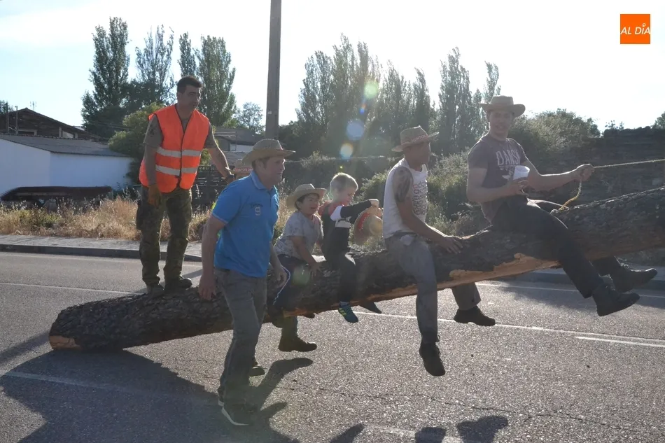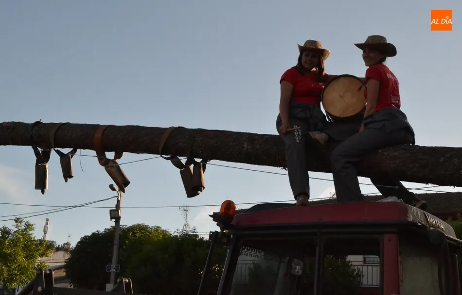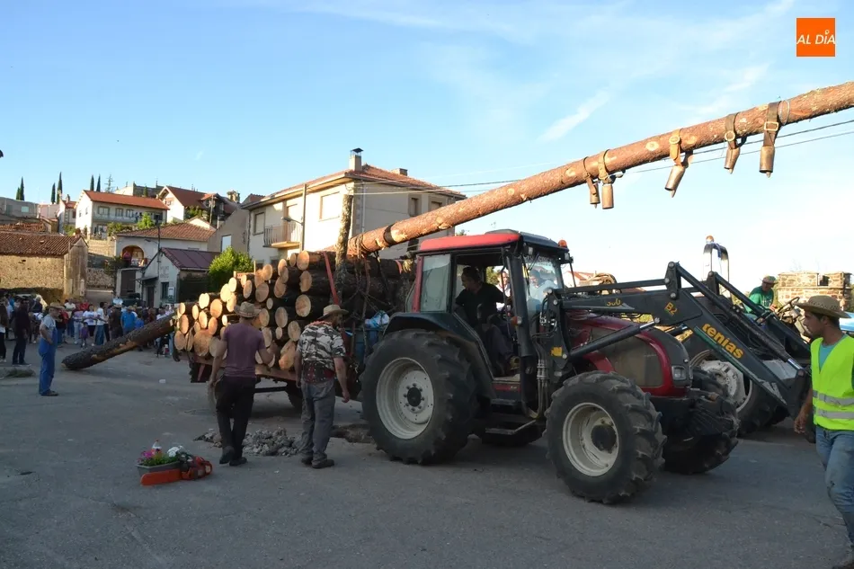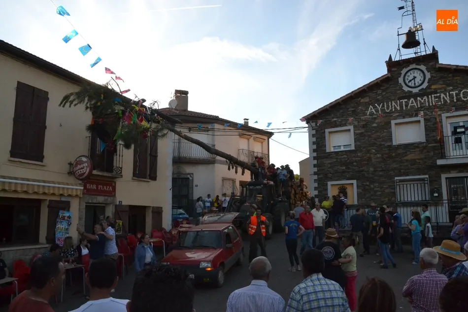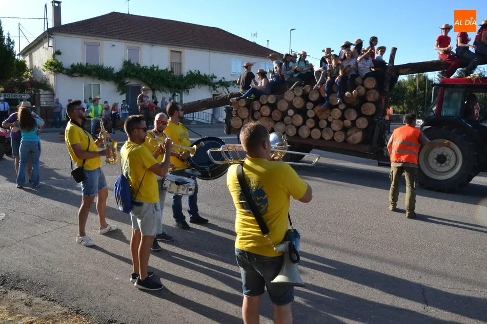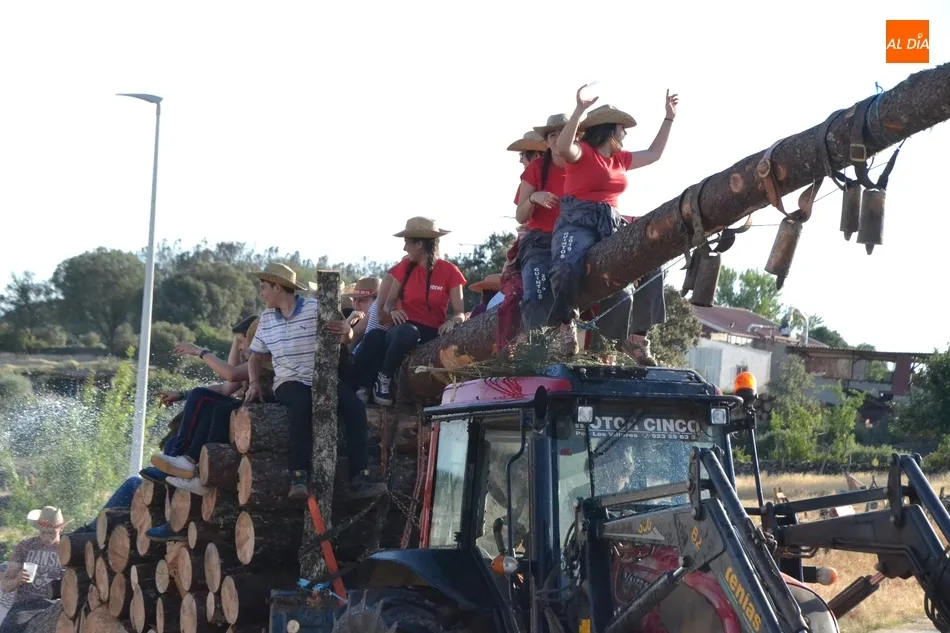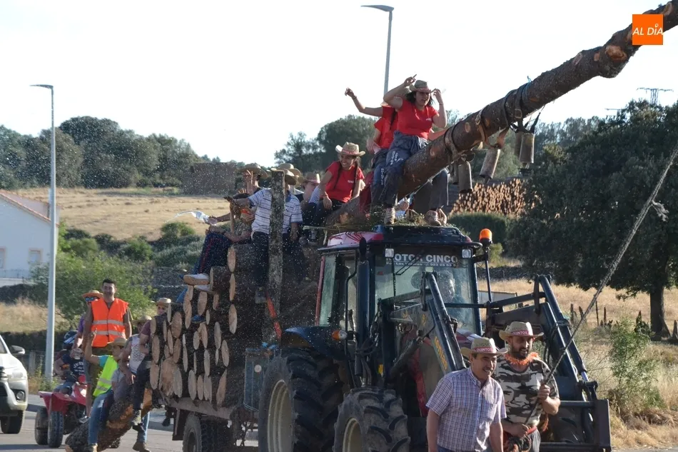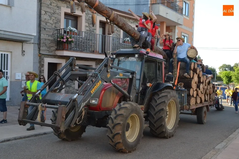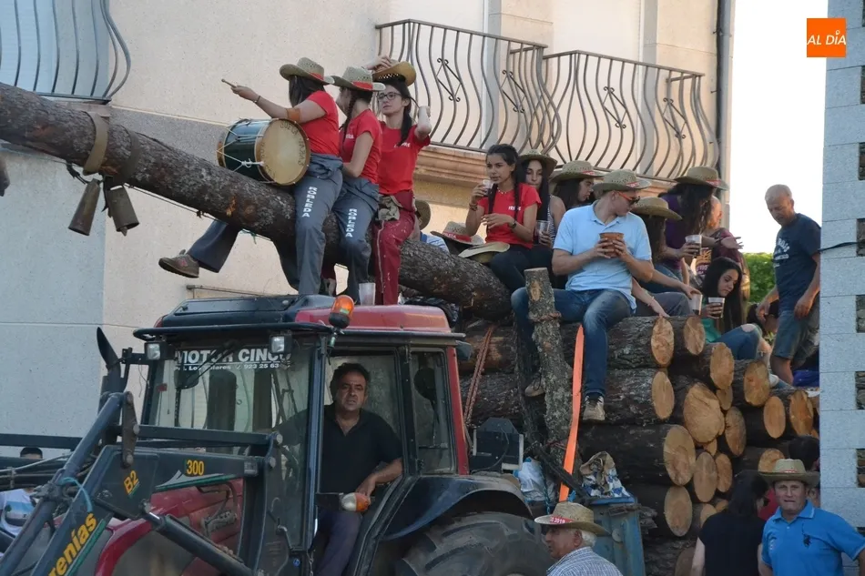 Este pino gigantesco llegó a la localidad en una comitiva que fue lanzando fuegos artificiales para anunciar su inminente aparición. Una vez llegaron al núcleo urbano de Robleda, hicieron una pequeña parada, en la cual se incorporaron los miembros de la Charanga La Escala 2.0, así como otros cuantos vecinos más para hacer el paseo hasta la Plaza del Caño, que incluyó otras dos paradas (a las puertas de un bar y junto al Ayuntamiento).