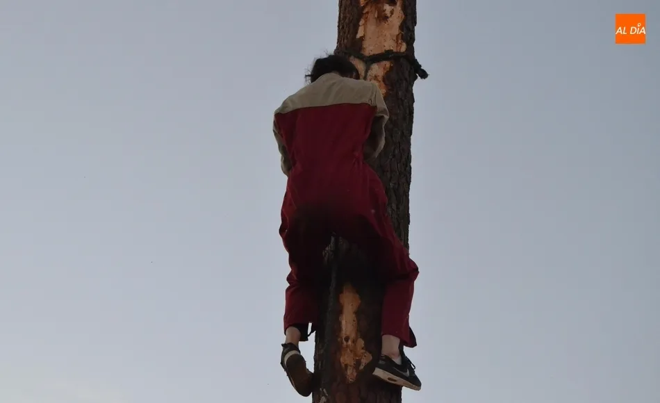 Unos cuantos niños ensayaron la subida al pino que les tocará hacer dentro de unos años